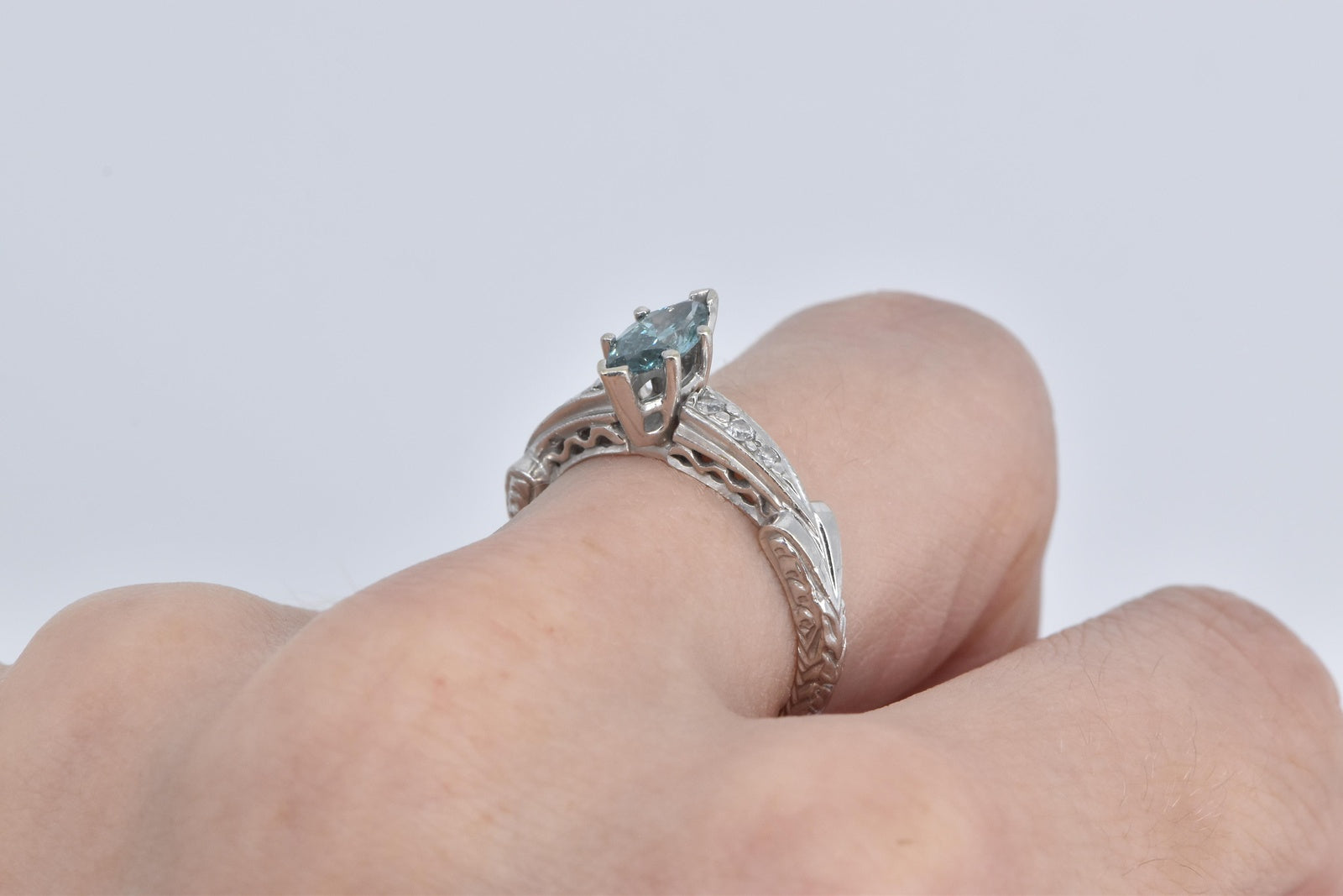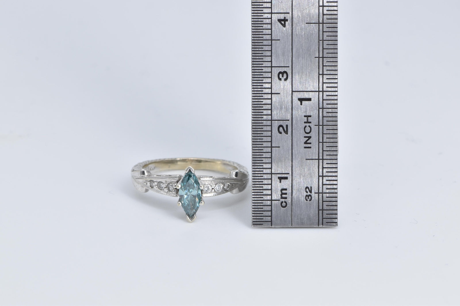 ·Item: 14K 0.80 Ctw Marquise Blue Diamond Engagement Ring Size 7 White Gold