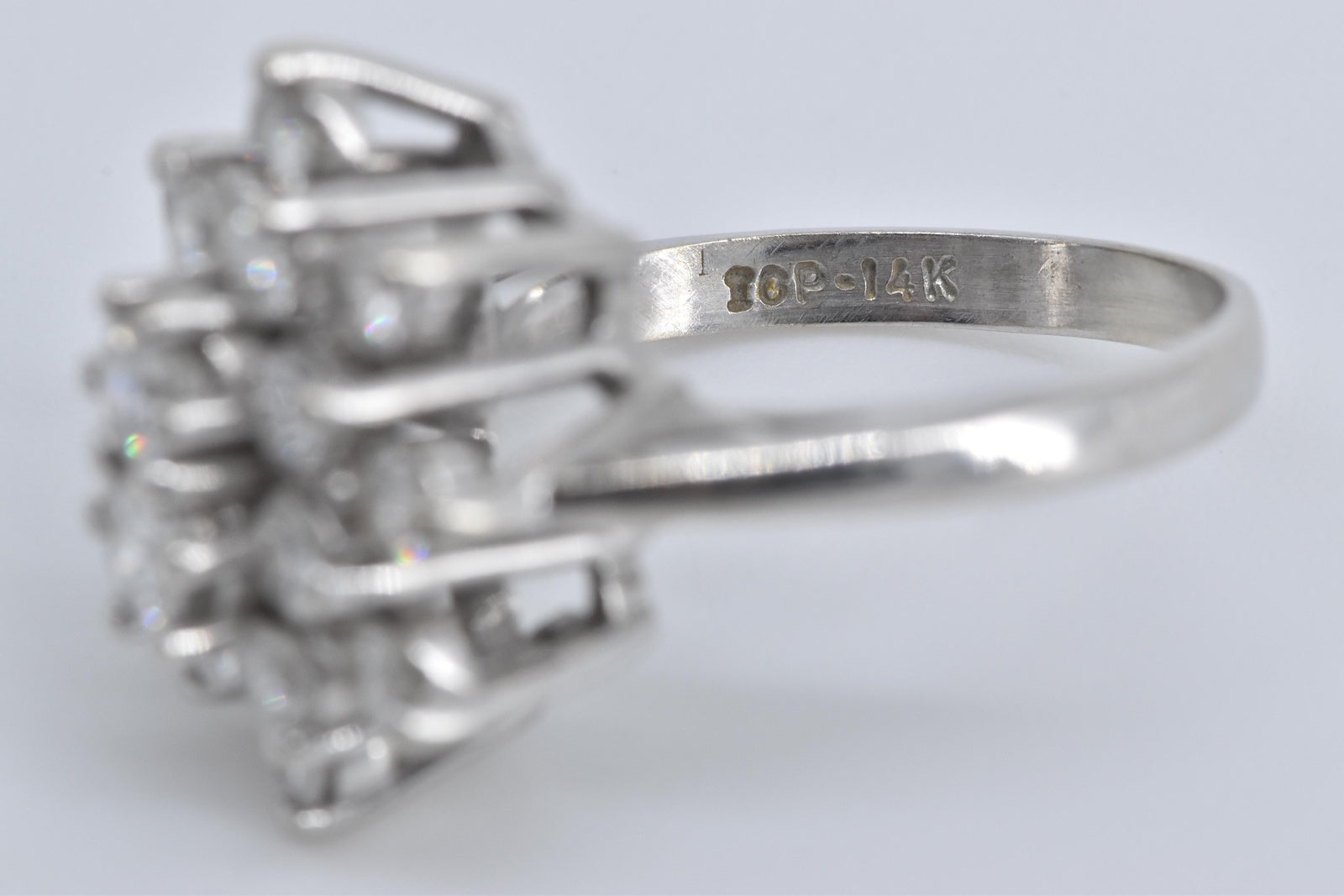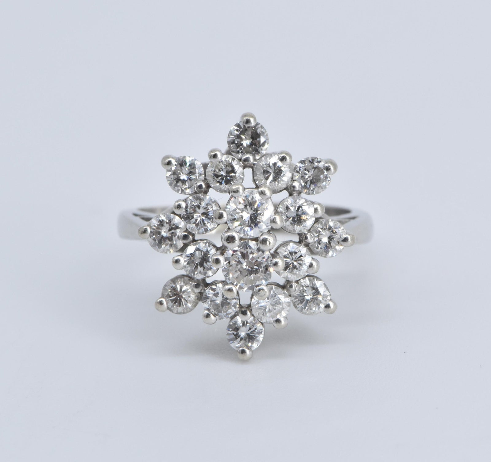 ·Item: 14K 1.90 Ctw Natural Diamond Cluster Statement Ring Size 6.75 White Gold