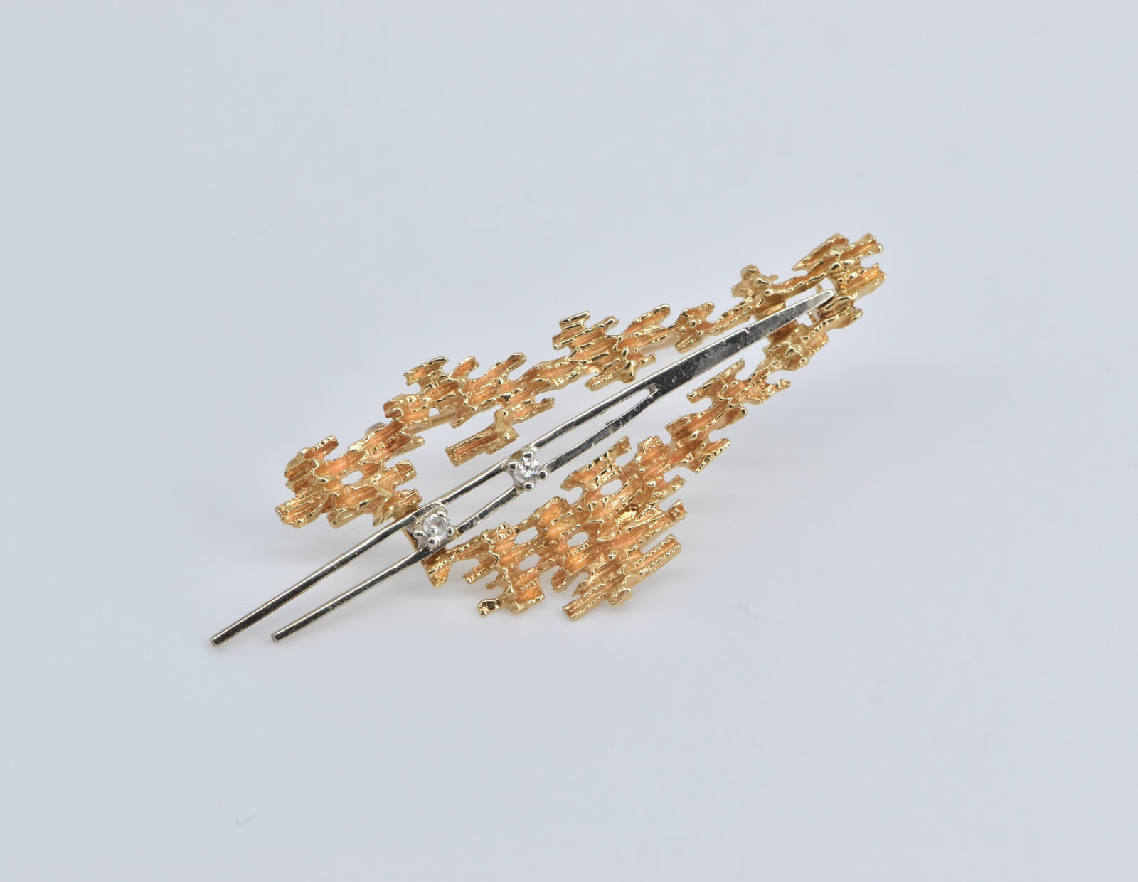 ·Item: 14K Two Tone Natural Diamond TCJI Abstract Textured Pin/Brooch Yellow Gold