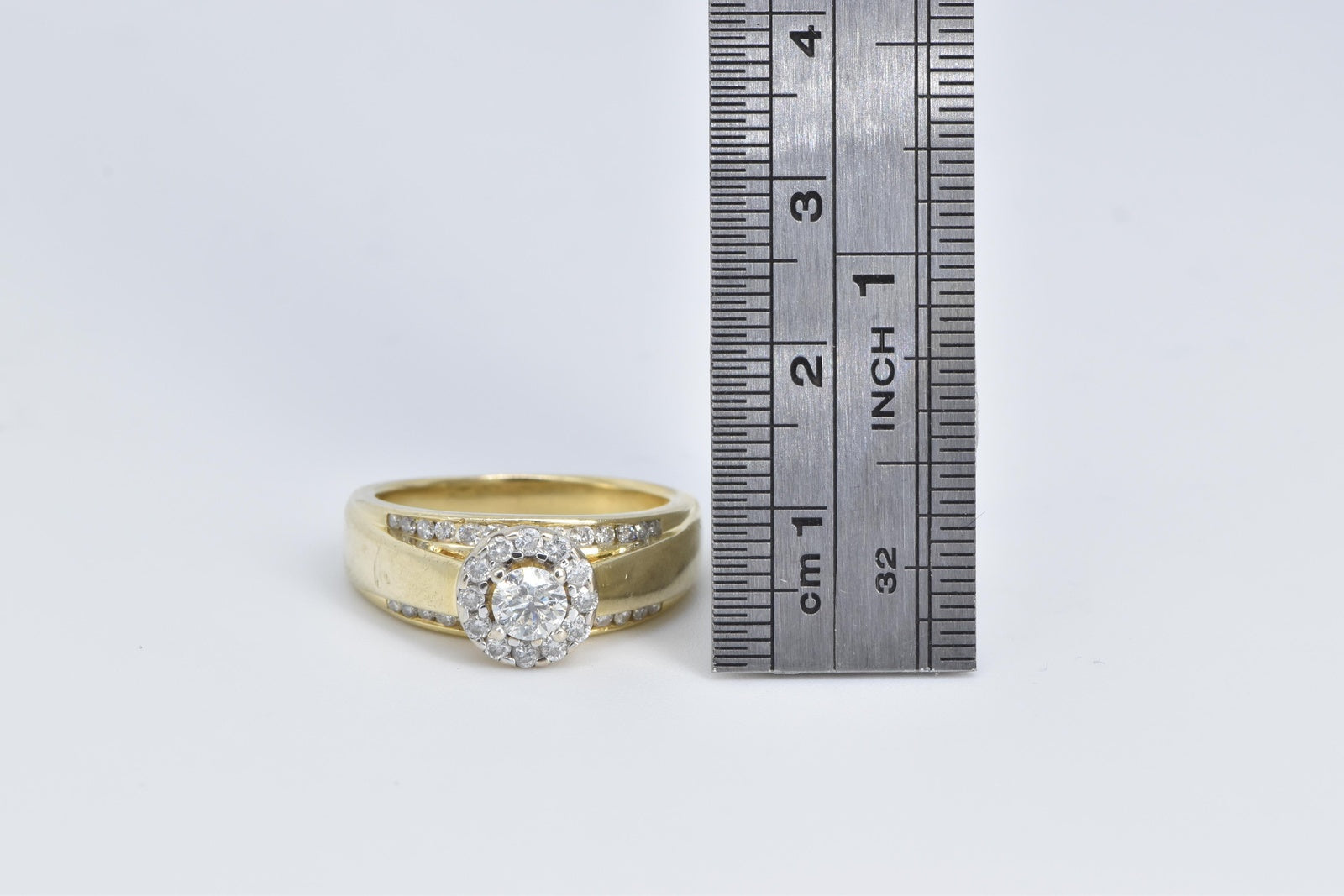 ·Item: 14K 0.74 Ctw Diamond Halo Cathedral Engagement Ring Size 7.75 Yellow Gold