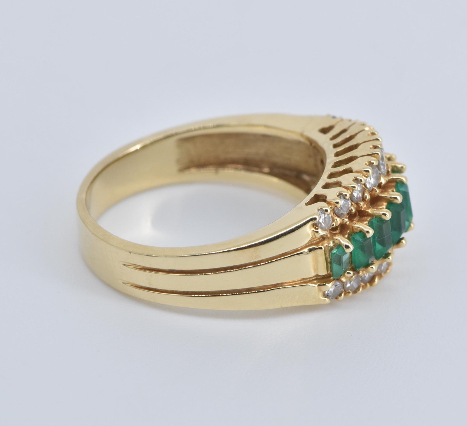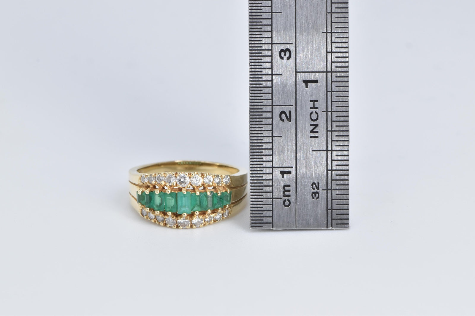 14K 1.10 Ctw Natural Diamond Syn. Emerald Band Ring Yellow Gold