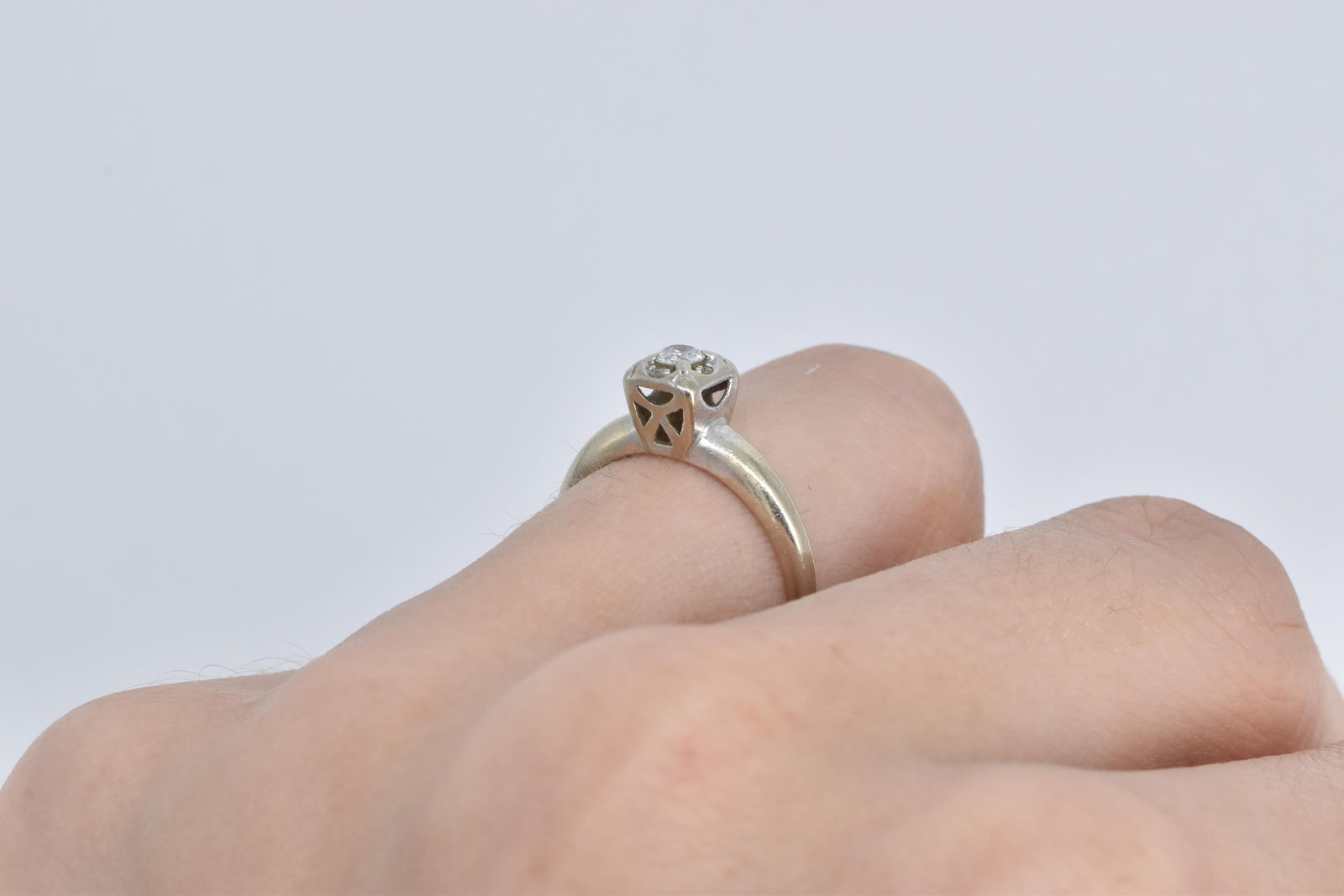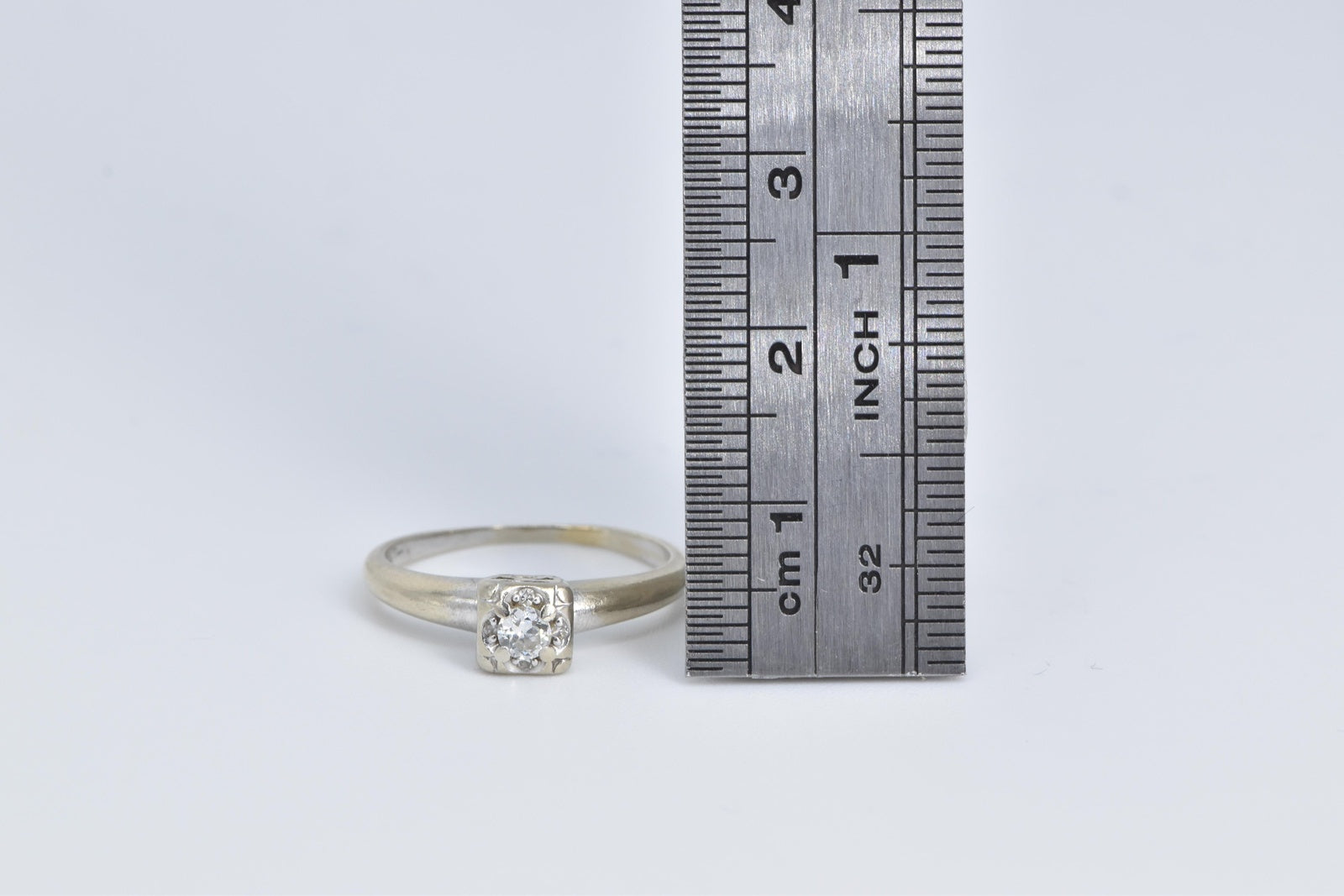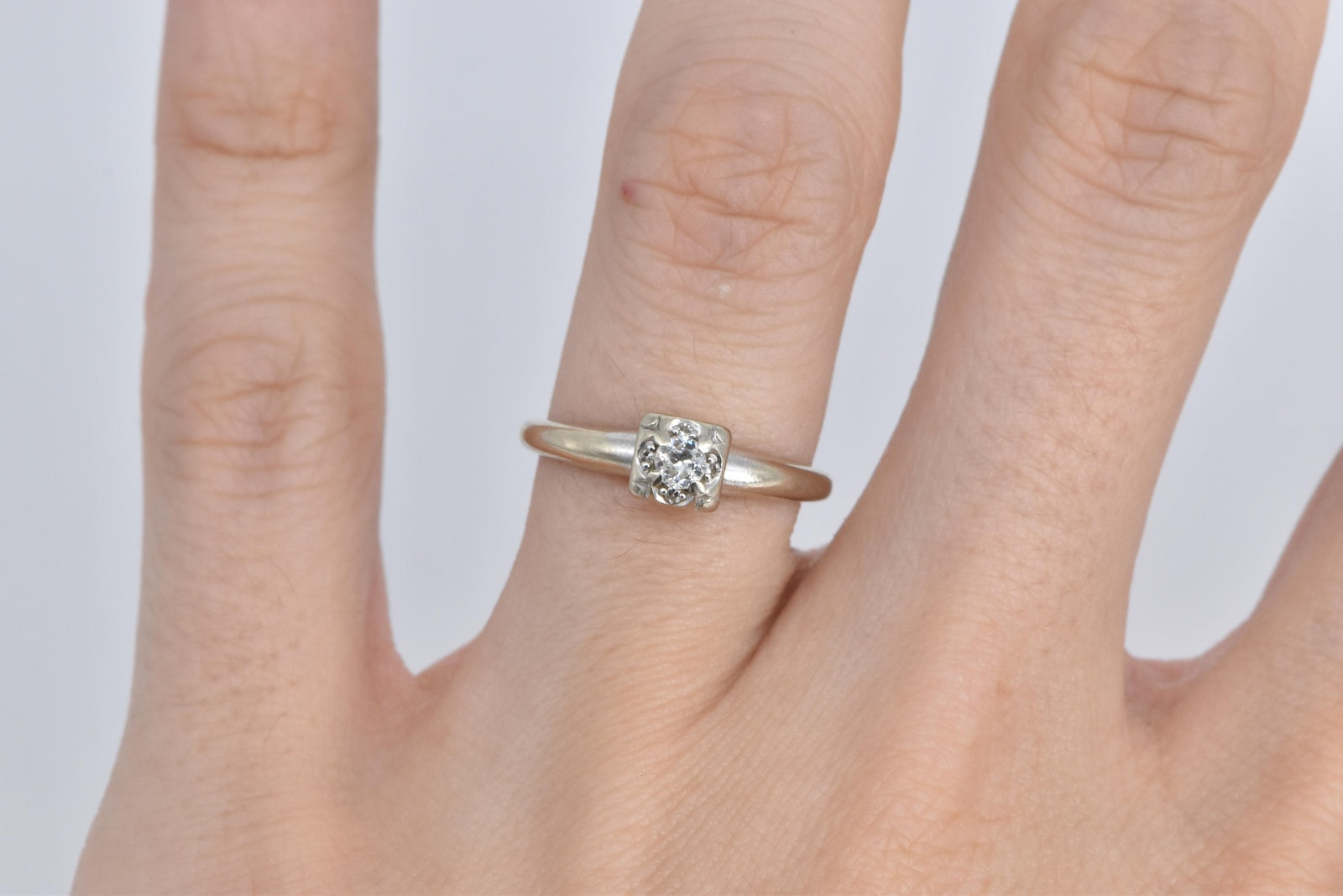 ·Item: 14K 1940's Classic Diamond Promise Engagement Ring Size 6 White Gold