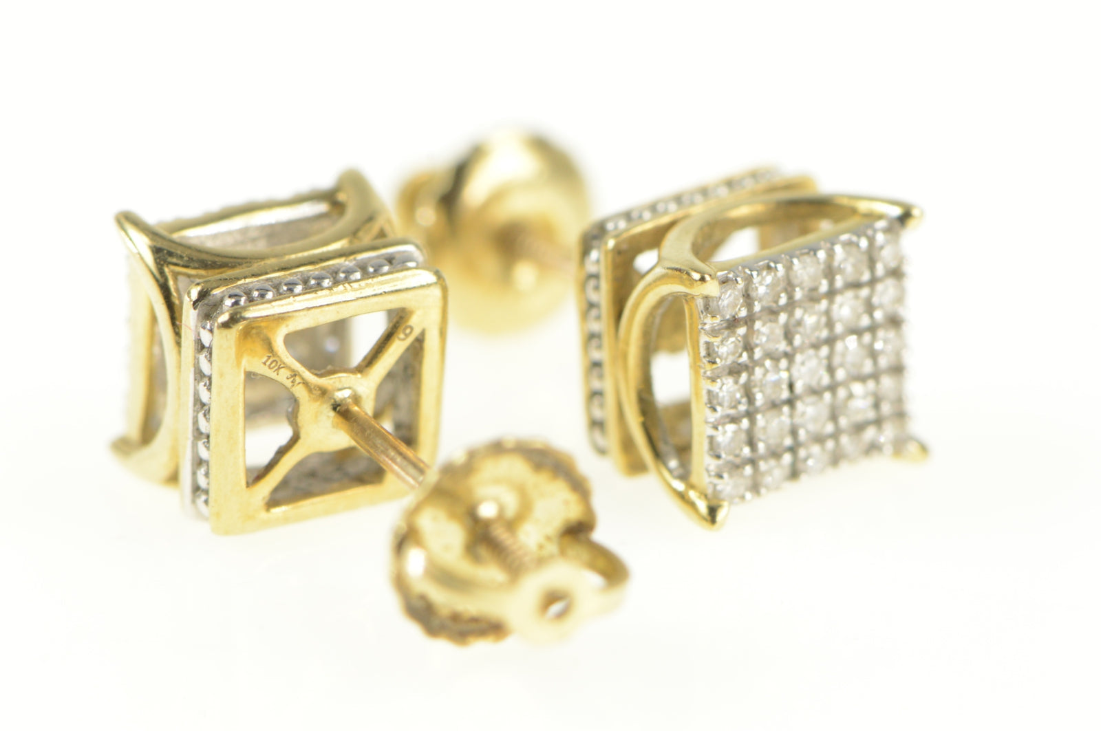 ·Item: 10K 0.25 Ctw Pave Diamond Square Classic Stud Earrings Yellow Gold