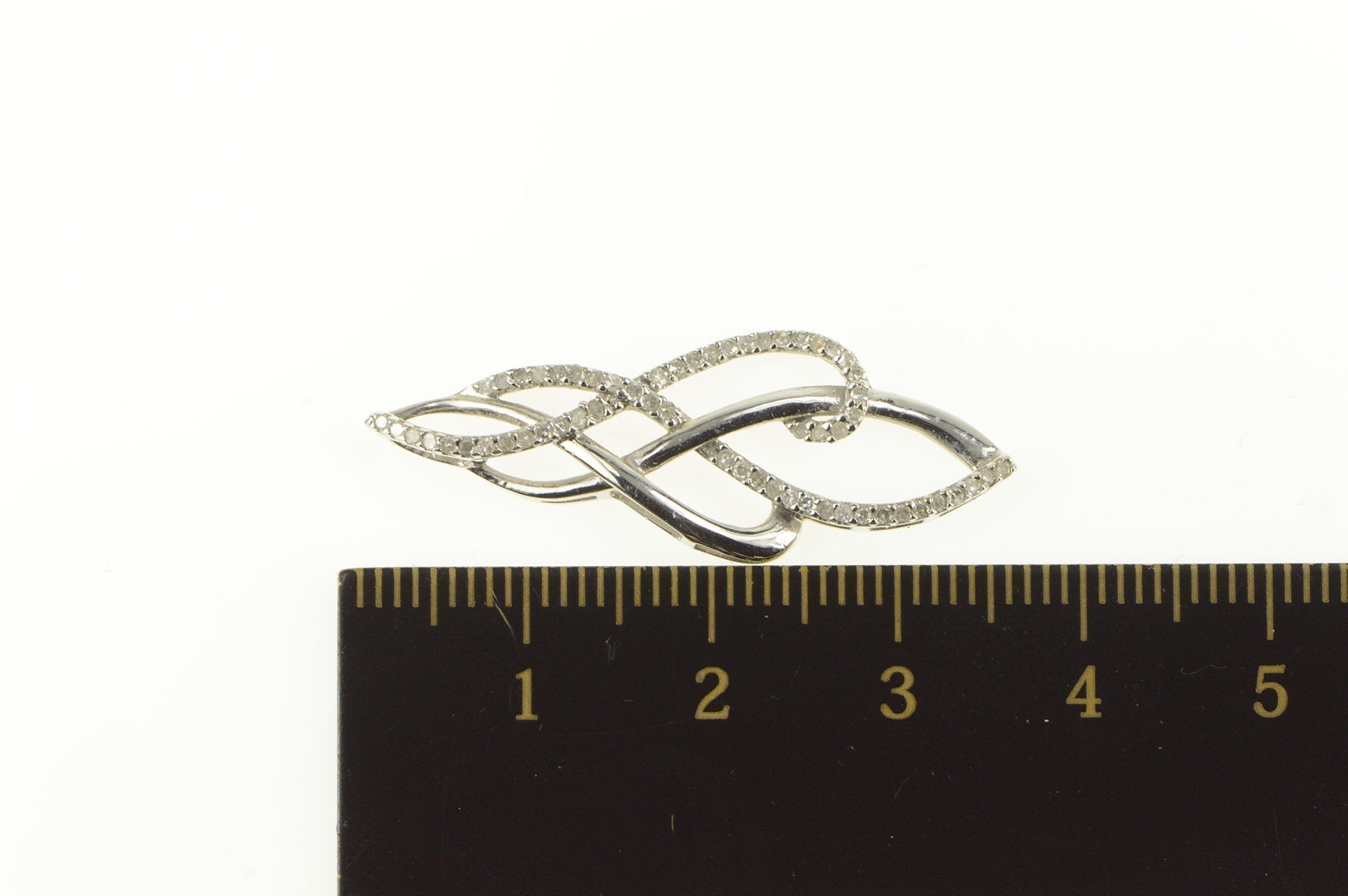 ·Item: 10K 0.30 Ctw Diamond Encrusted Wavy Loop Swirl Pendant White Gold