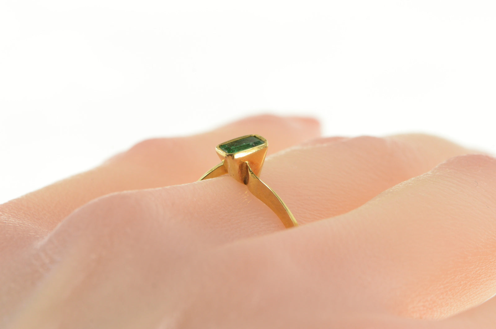 10K 0.34 Ct Emerald Cut Emerald Ornate Statement Ring Yellow Gold