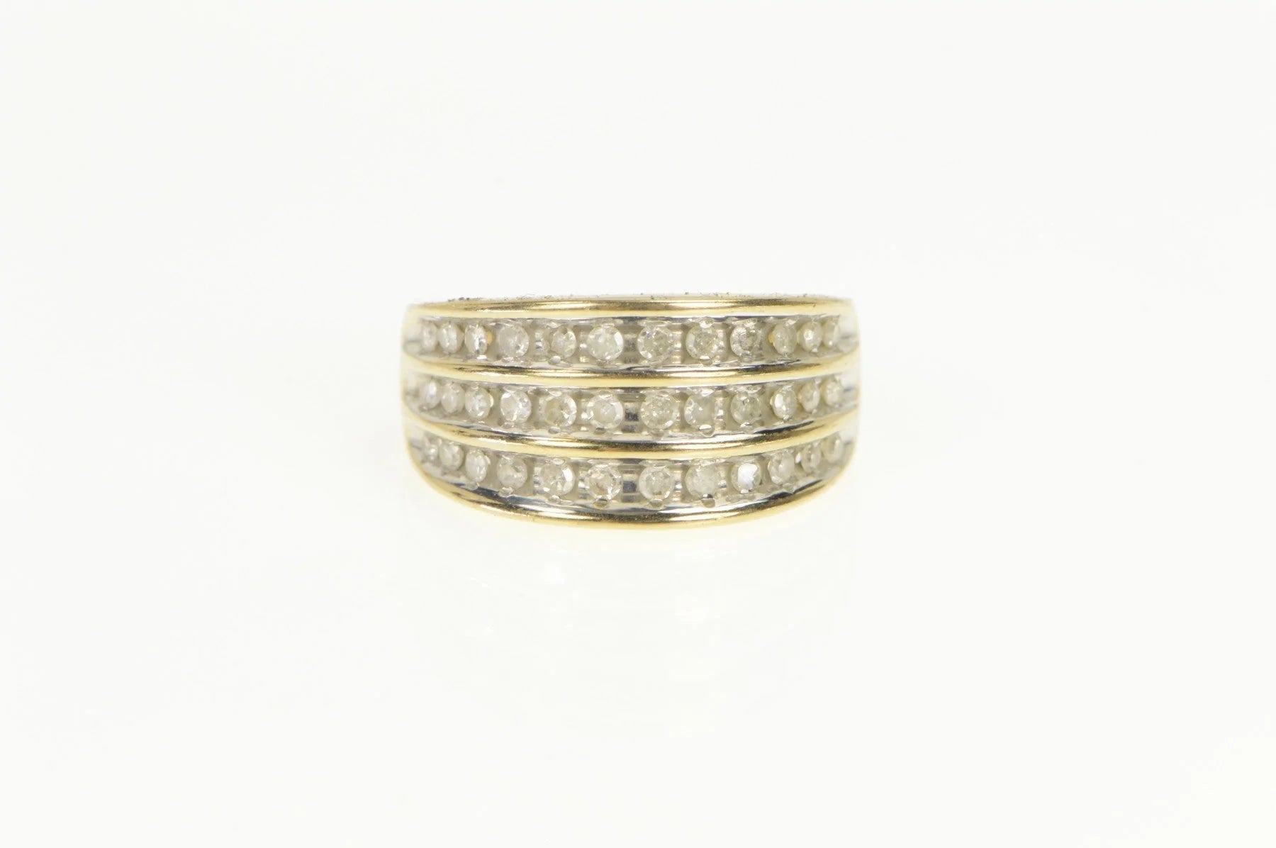 ·Item: 10K 0.50 Ctw Tiered Row Diamond Statement Band Ring Size 7 Yellow Gold