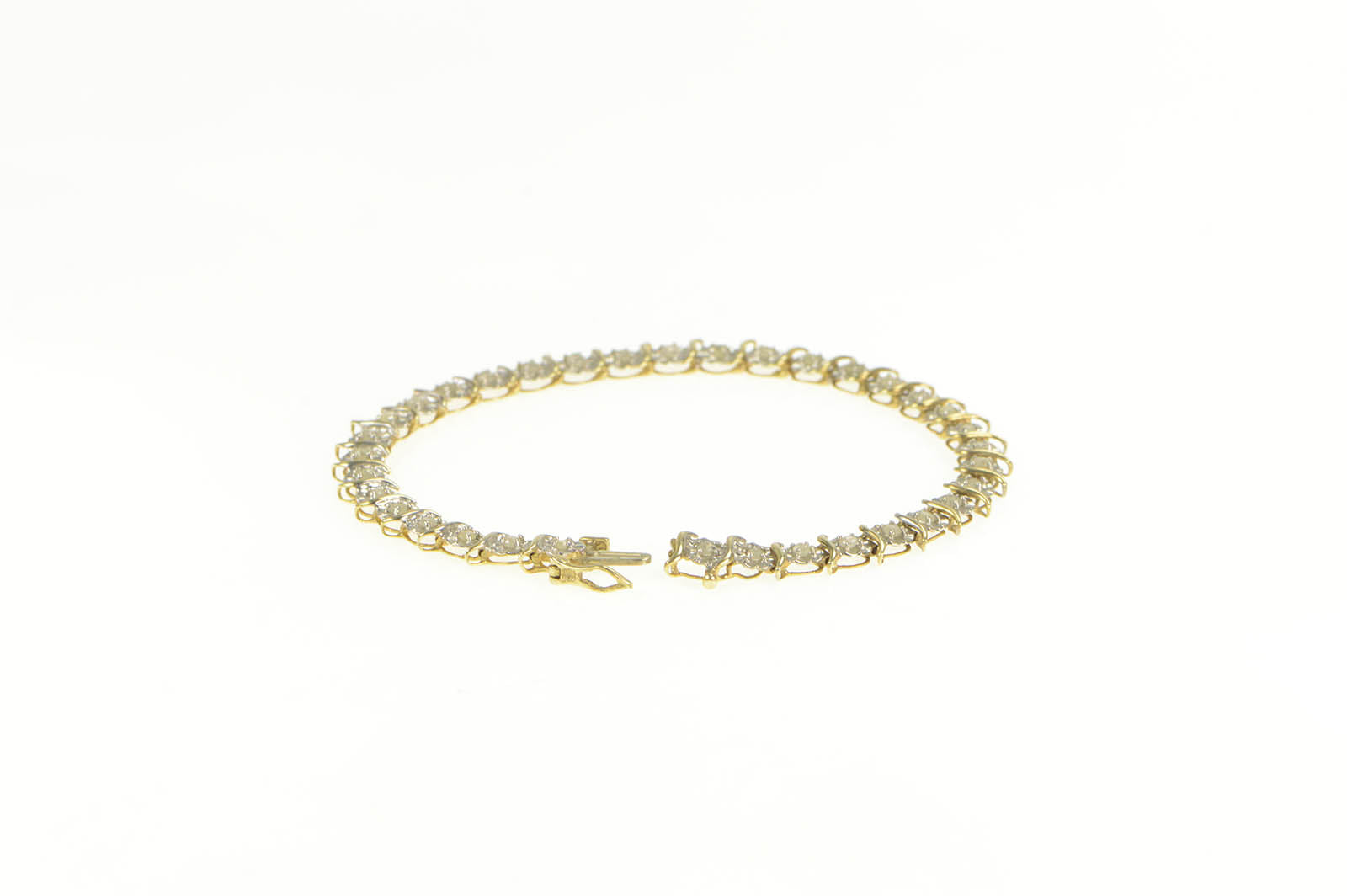 ·Item: 10K 0.75 Ctw Diamond Classic Wavy Link Tennis Bracelet 6.75" Yellow Gold