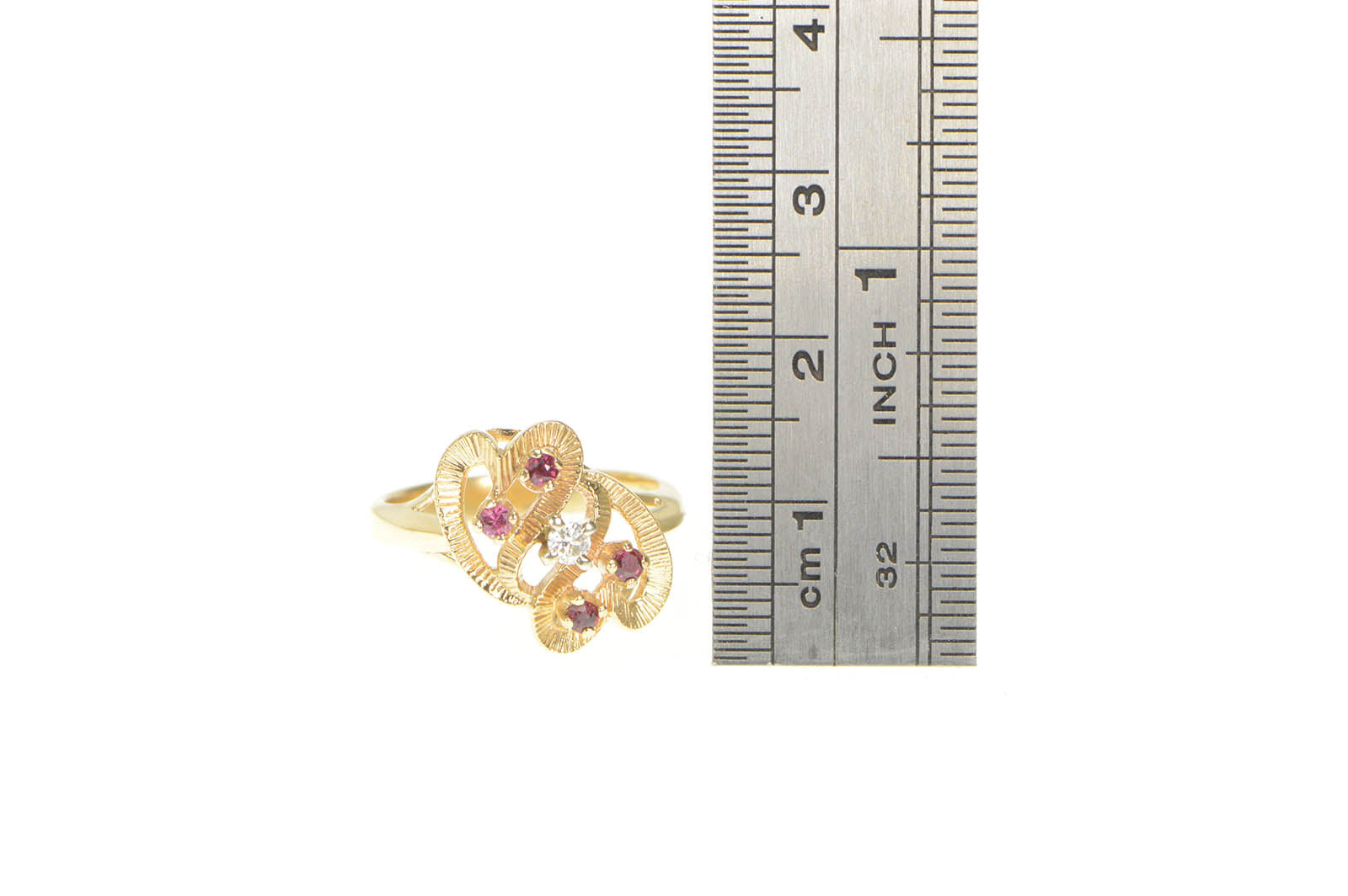 ·Item: 10K 1950's Natural Ruby Diamond Heart Bypass Ring Size 5.75 Yellow Gold