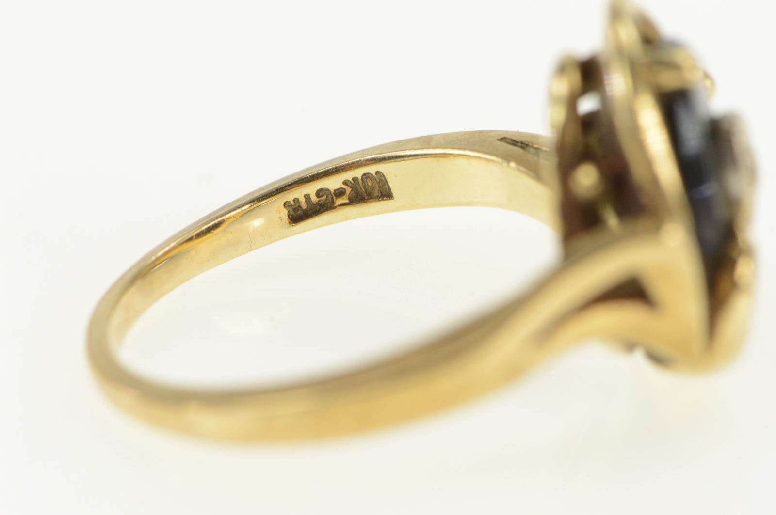 10K Art Deco Black Onyx Heart Diamond Bypass Ring Yellow Gold