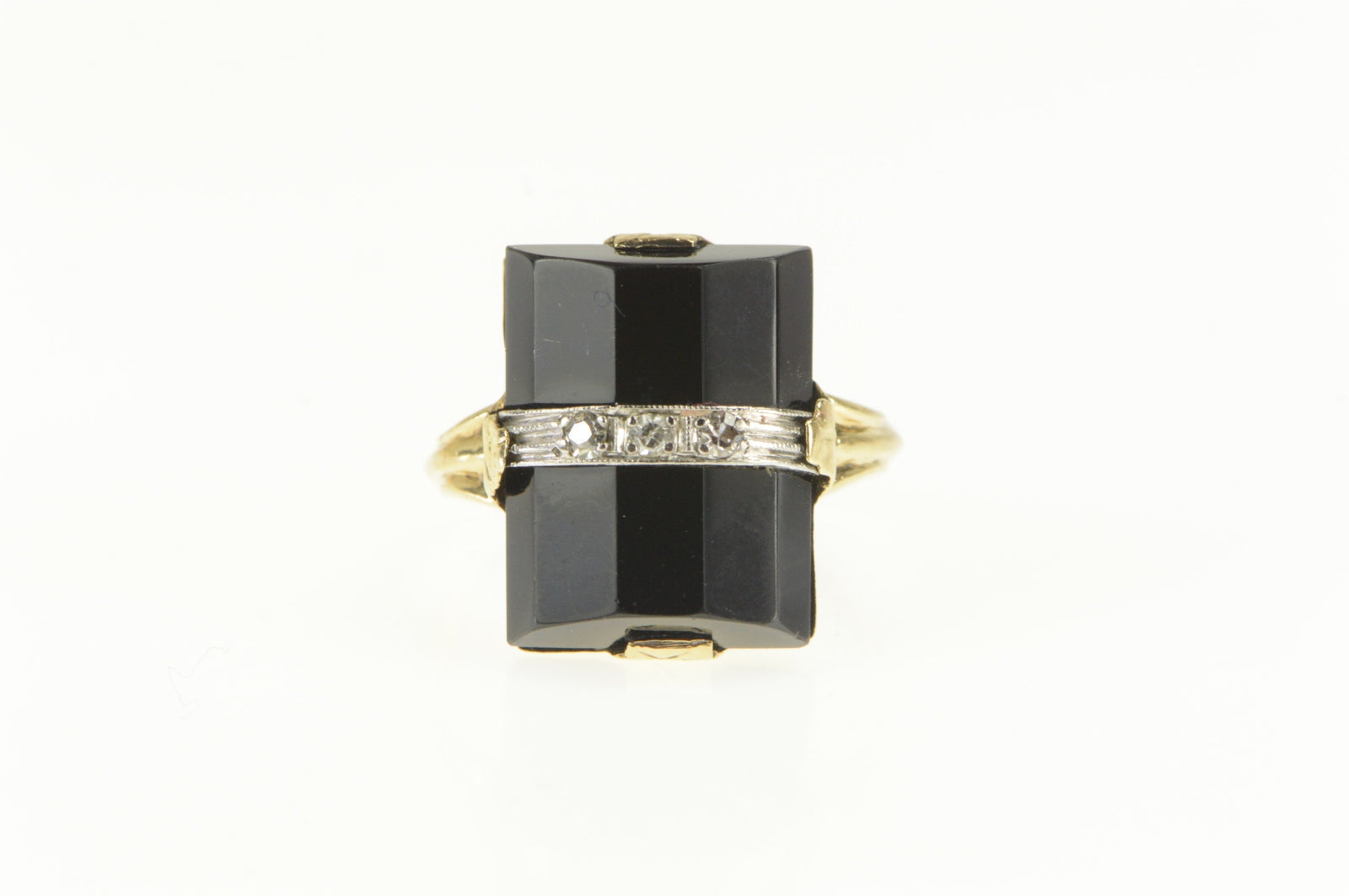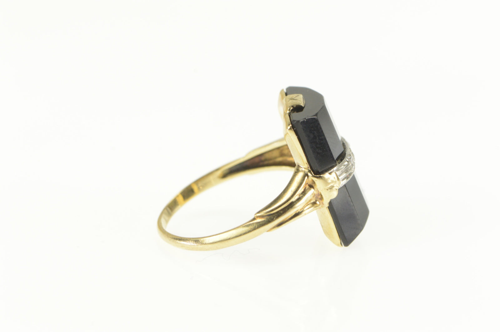 10K Art Deco Unique Black Onyx Diamond Squared Ring Yellow Gold