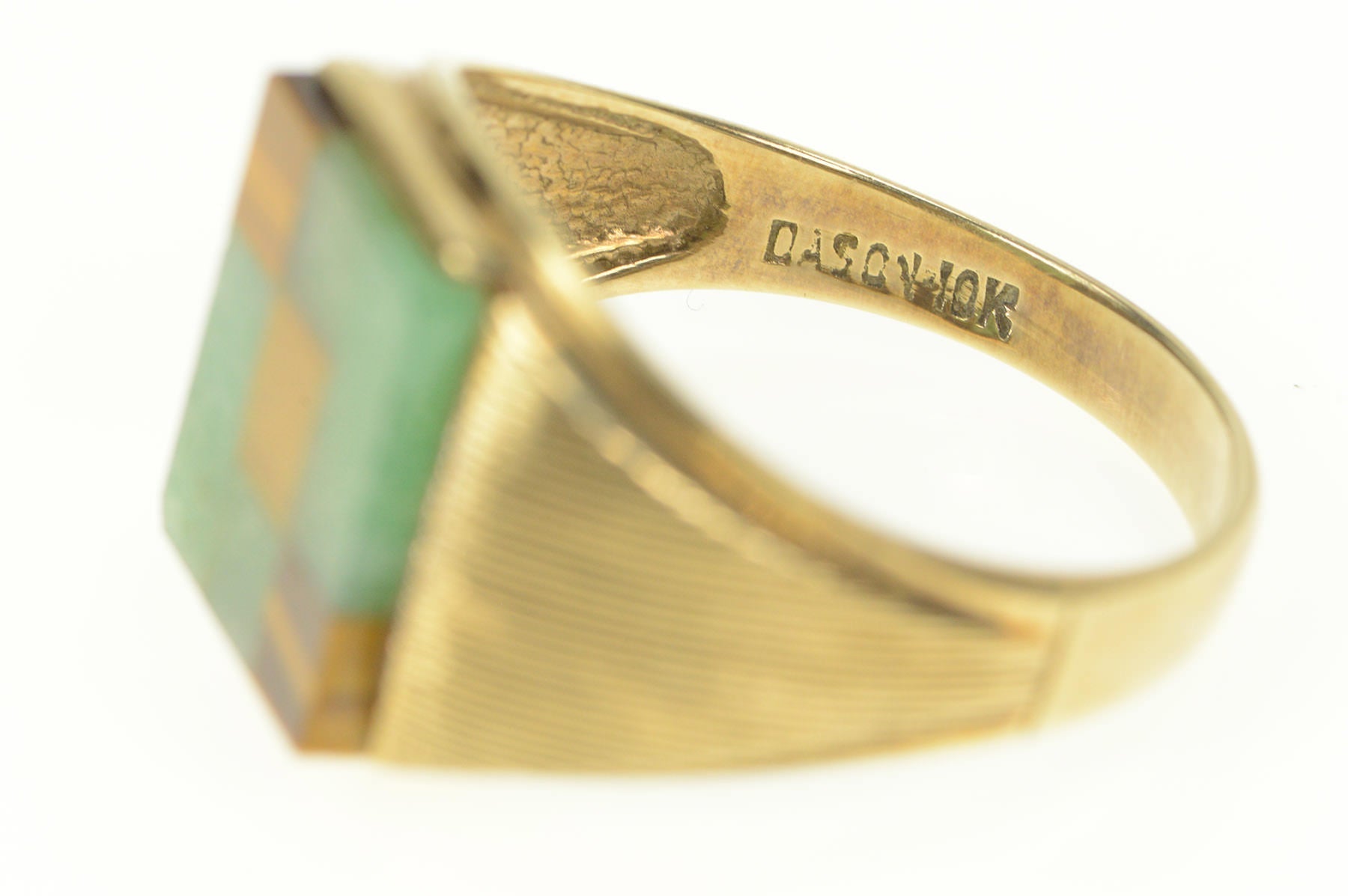 ·Item: 10K Aventurine Tiger's Eye Squared Inlay Men's Ring Size 13 Yellow Gold