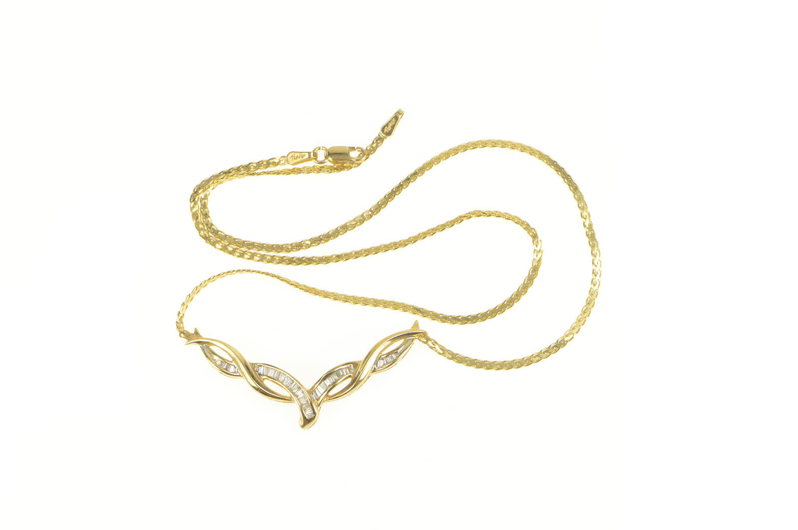 ·Item: 10K Baguette Diamond Chevron Twist Chain Necklace 17" Yellow Gold