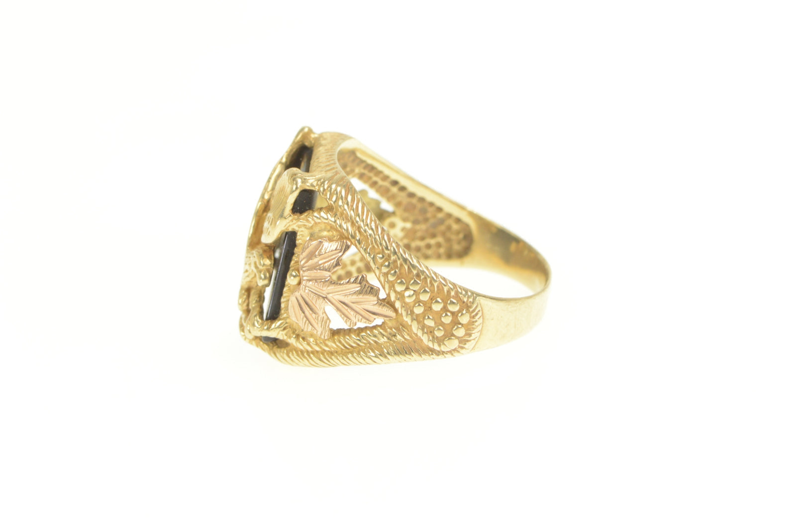 ·Item: 10K Black Onyx Black Hills Leaf Eagle Men's Ring Size 10 Yellow Gold