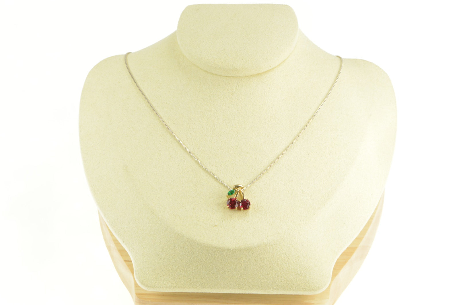 ·Item: 10K Cherries Syn. Ruby & Emerald Cluster Cute Charm/Pendant Yellow Gold