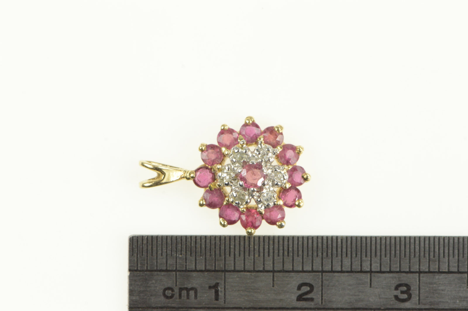 ·Item: 10K Classic Ruby Diamond Halo Cluster Pendant Yellow Gold