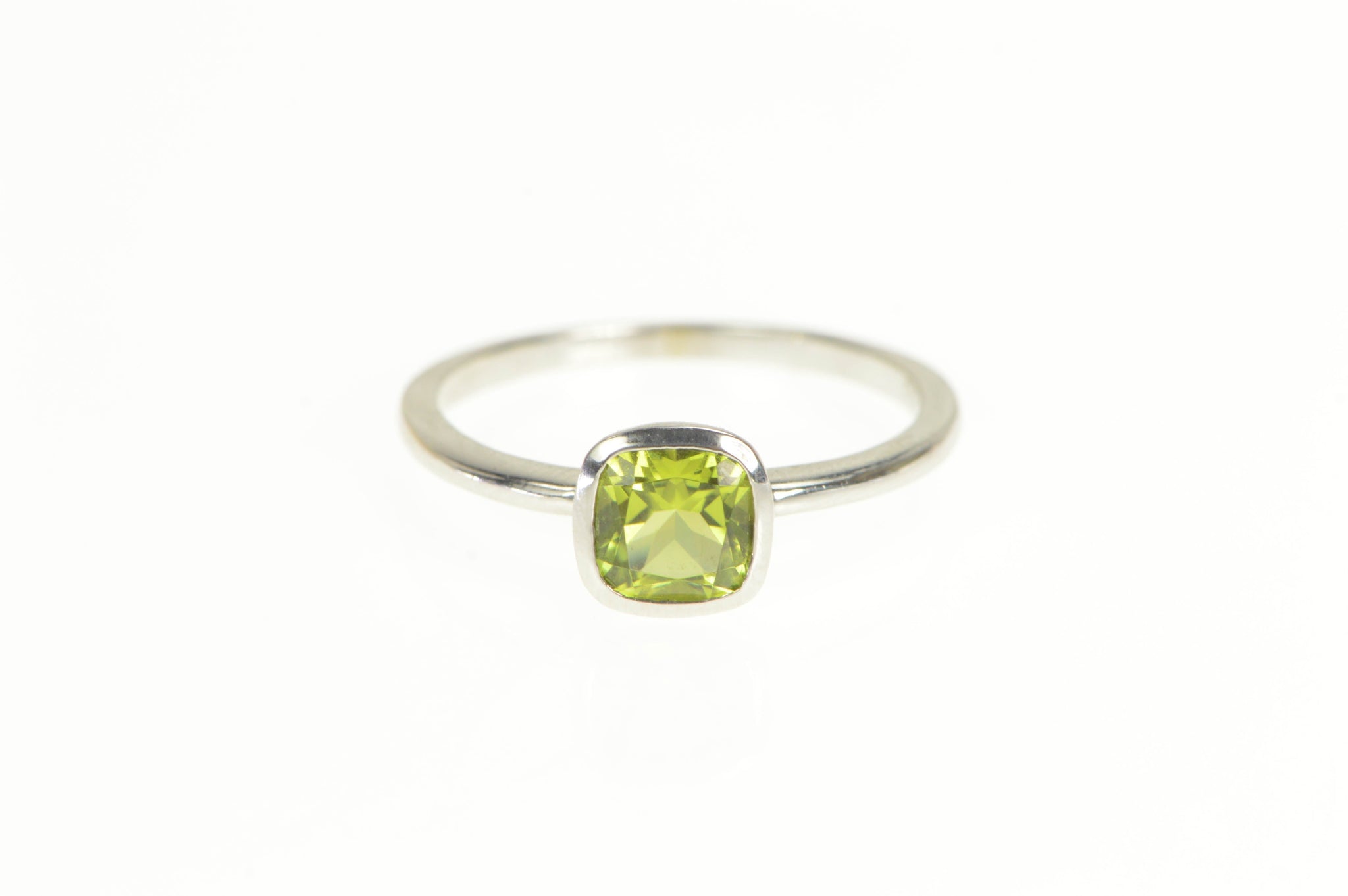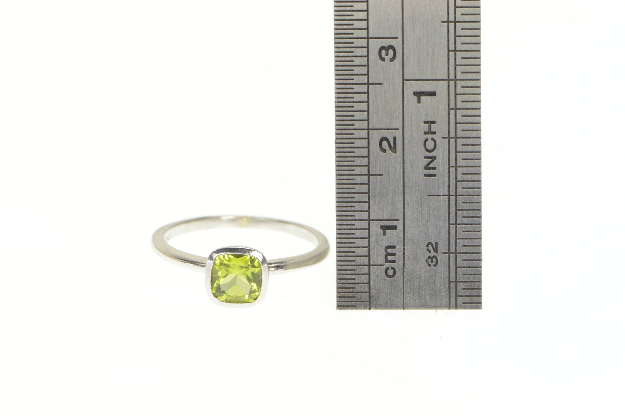 ·Item: 10K Cushion Peridot Solitaire Classic Statement Ring Size 7 White Gold