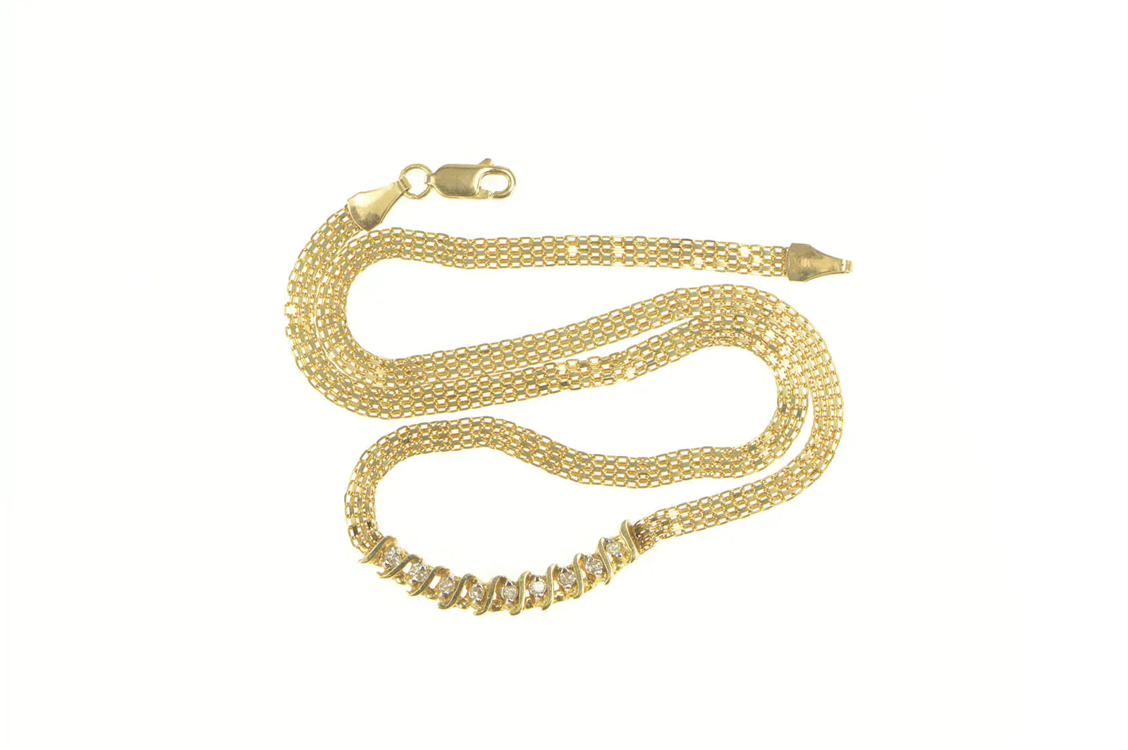 ·Item: 10K Diamond Curved Bar Tennis Flat Link Chain Necklace 16.5" Yellow Gold
