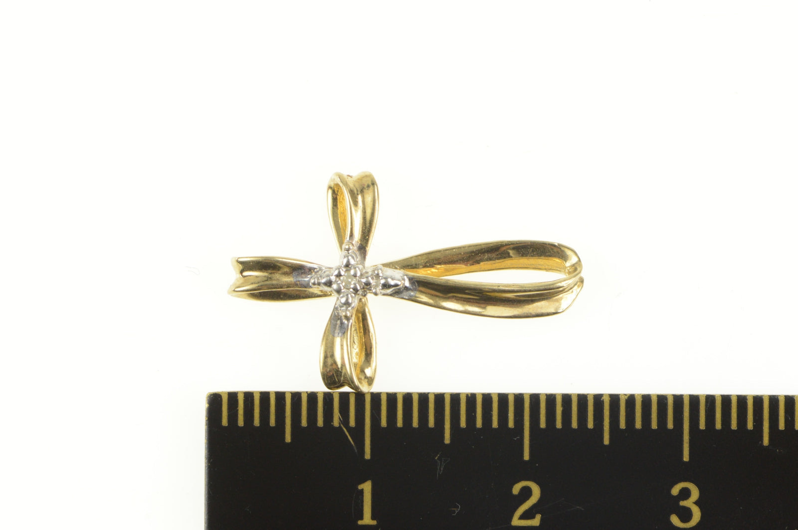 ·Item: 10K Diamond Curvy Loop Cross Christian Faith Pendant Yellow Gold