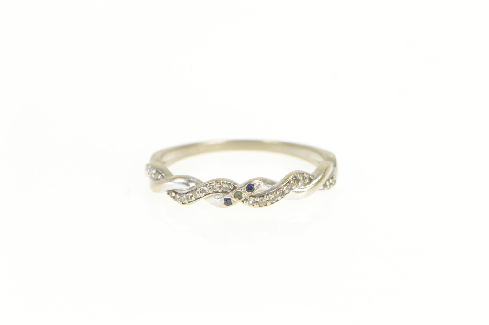 ·Item: 10K Diamond Encrusted Sapphire Accent Twist Ring Size 7.5 White Gold