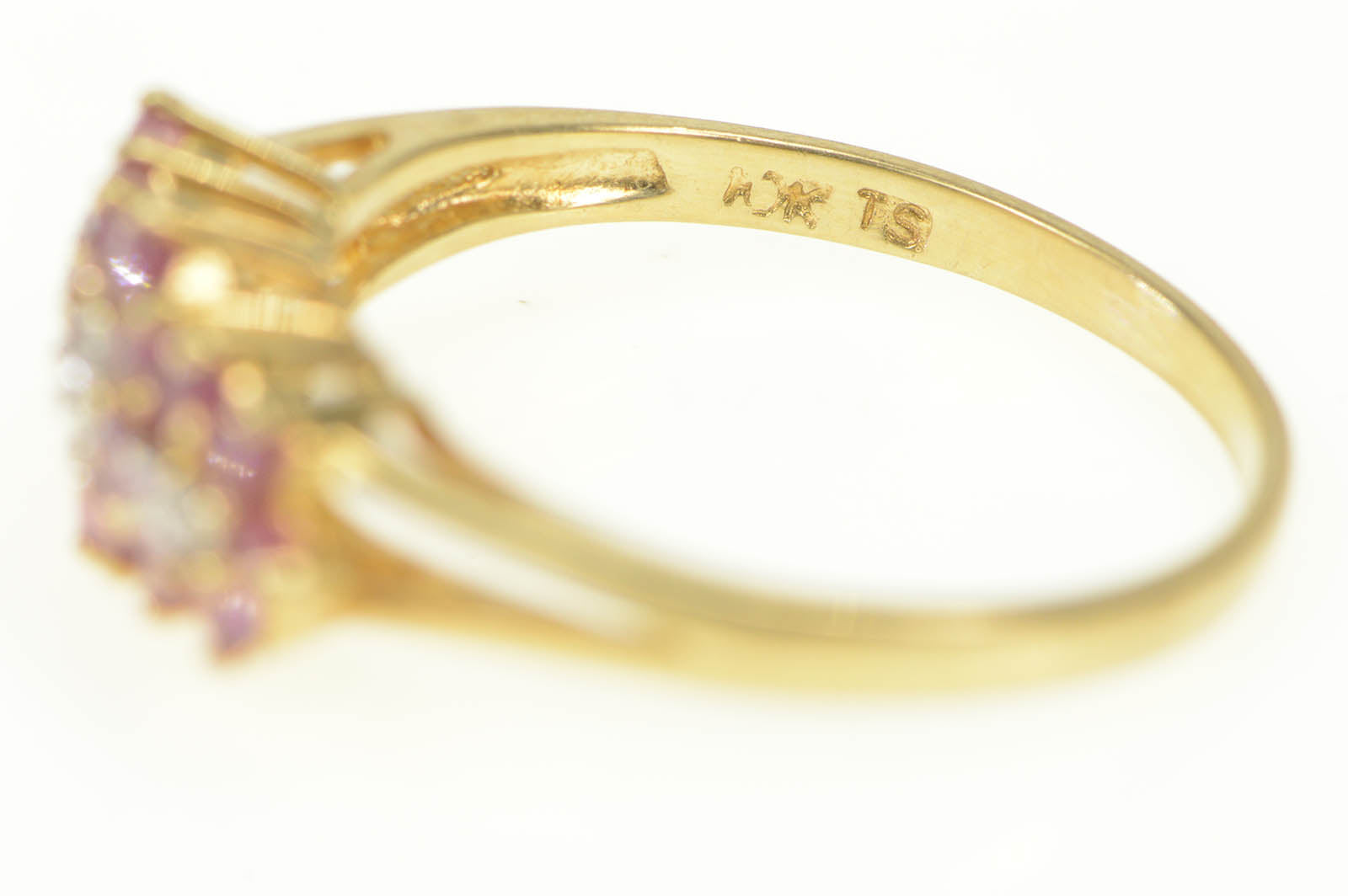 ·Item: 10K Diamond Ruby Flower Cluster Statement Ring Size 6.75 Yellow Gold