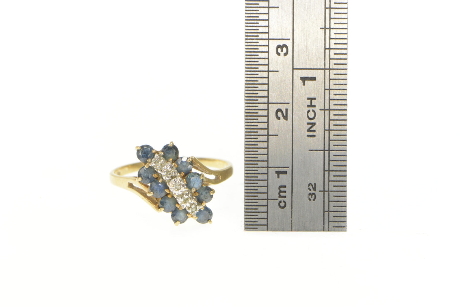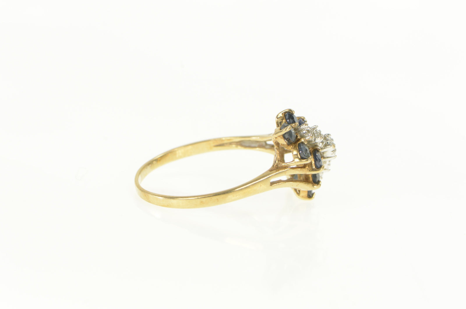·Item: 10K Diamond Sapphire Halo Wavy Curvy Bypass Ring Size 8.5 Yellow Gold