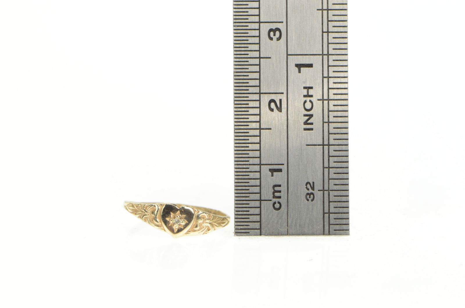 ·Item: 10K Diamond Vintage Heart Love Baby Childs Ring Size 2.5 Yellow Gold