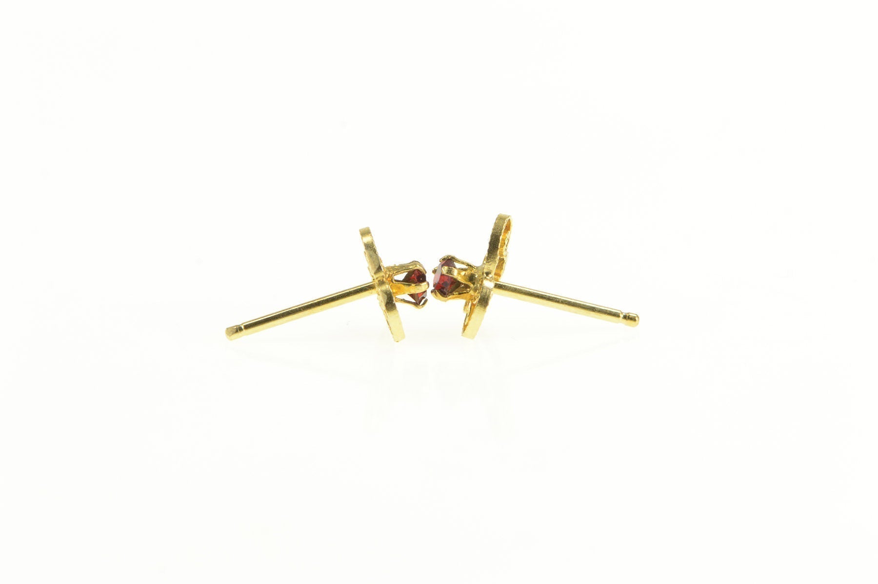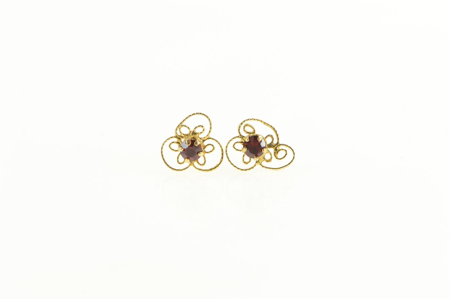 ·Item: 10K Garnet Retro Swirl Filigree Clover Stud Earrings Yellow Gold
