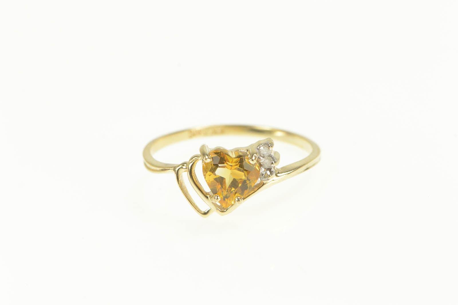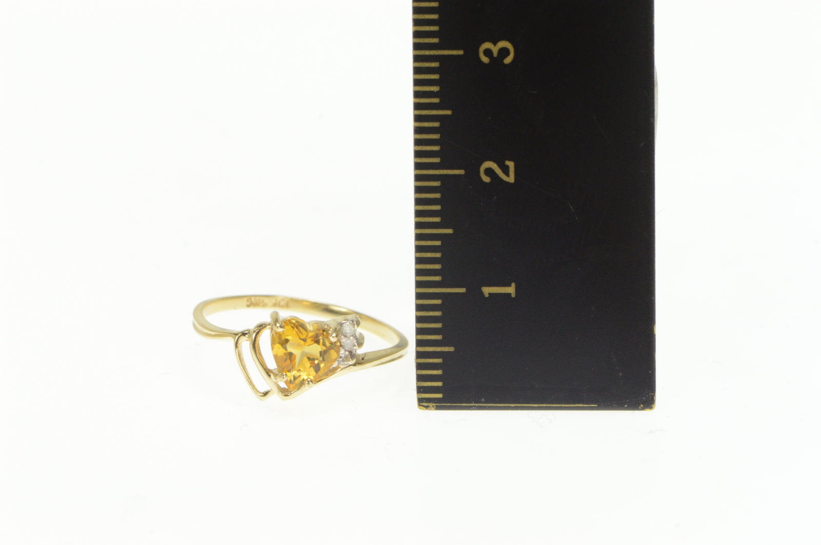 10K Heart Citrine Diamond Retro Classic Bypass Ring Yellow Gold