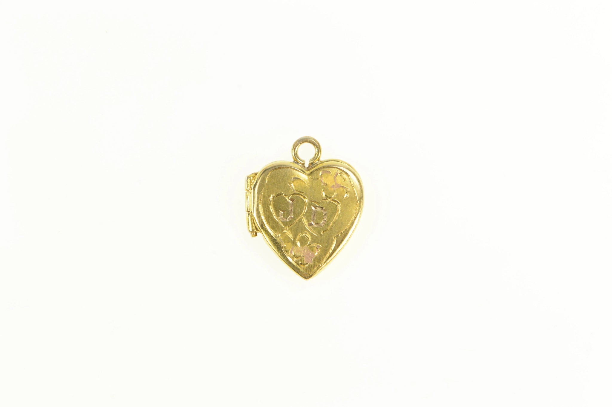10K J D Monogram Name Initial Heart Photo Locket Charm/Pendant Yellow Gold