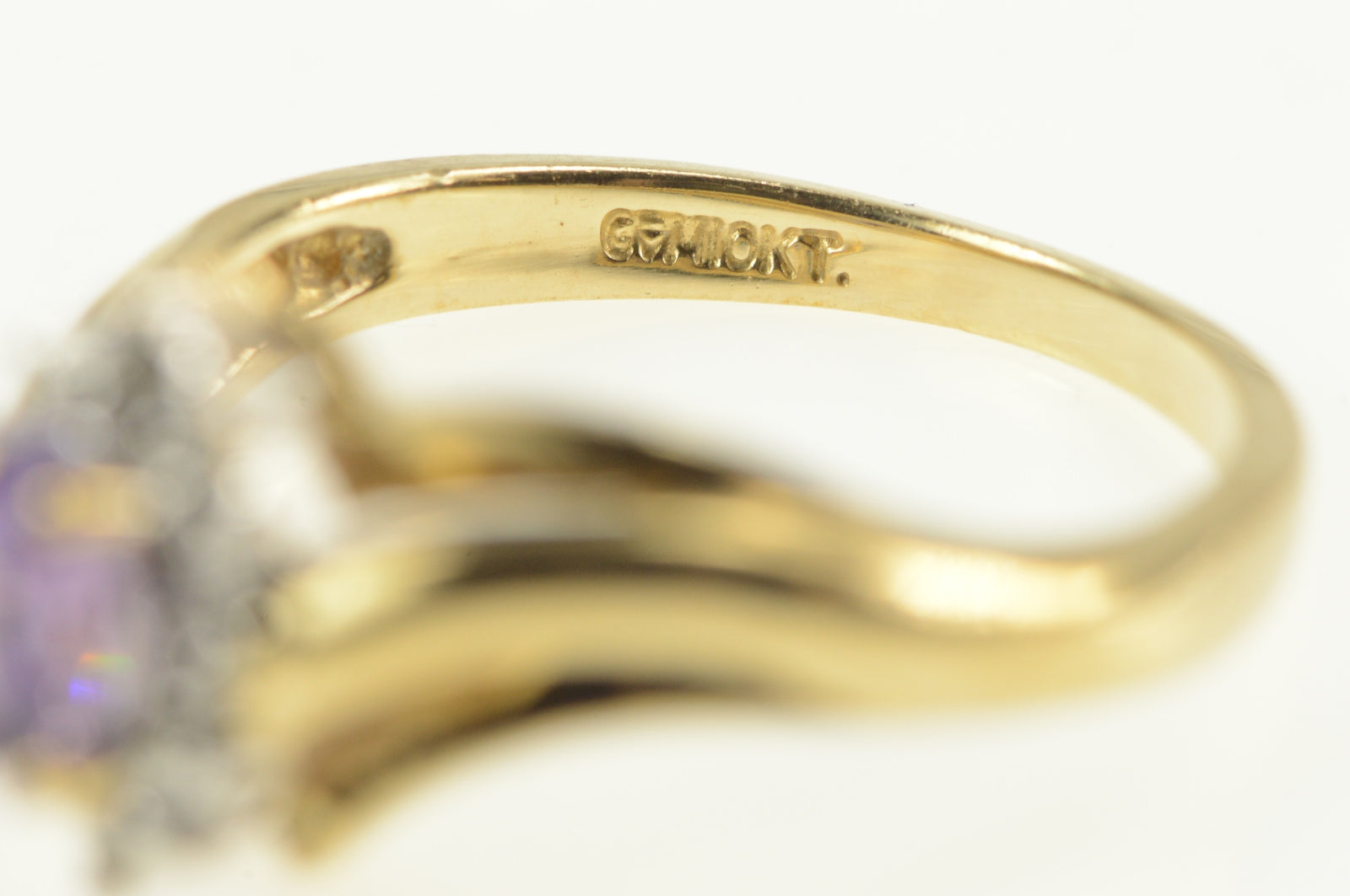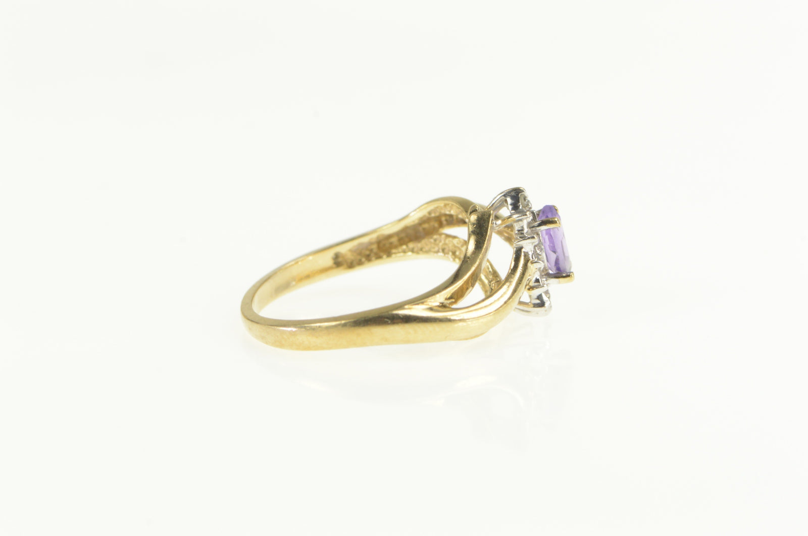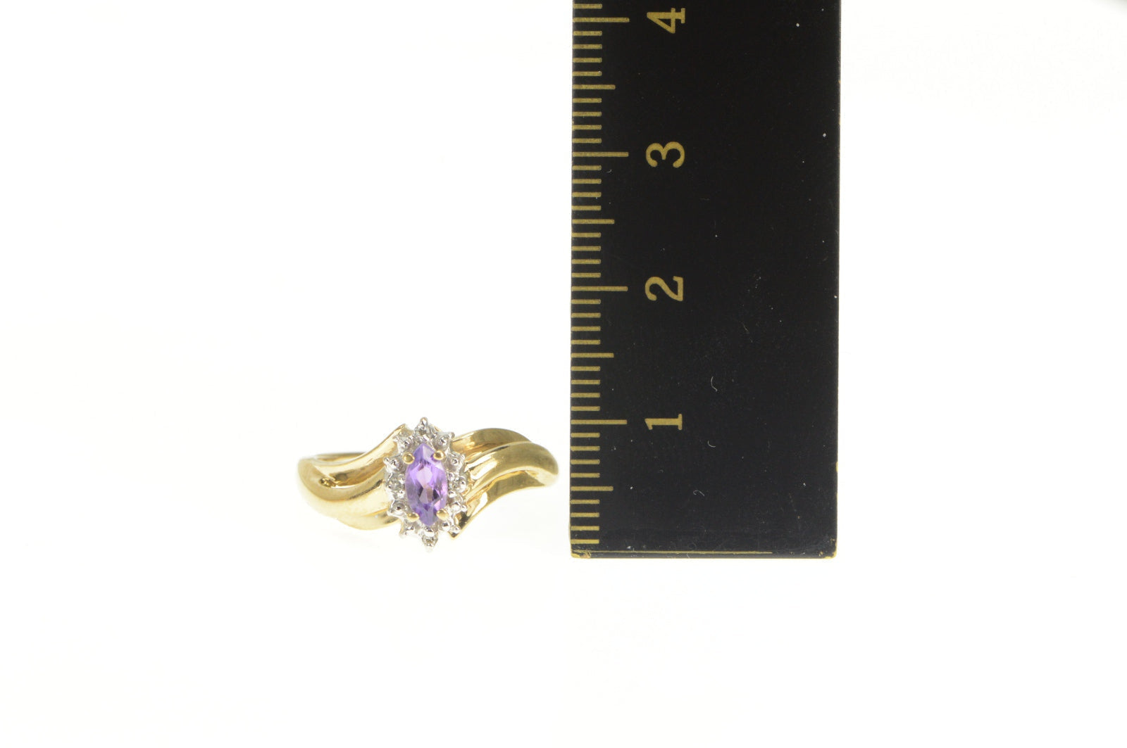 ·Item: 10K Marquise Amethyst Diamond Wavy Bypass Ring Size 6.25 Yellow Gold