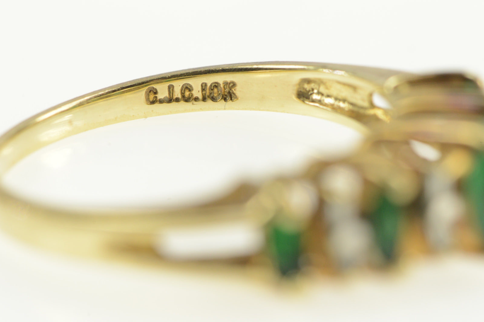 ·Item: 10K Marquise Emerald Diamond Statement Band Ring Size 6.75 Yellow Gold
