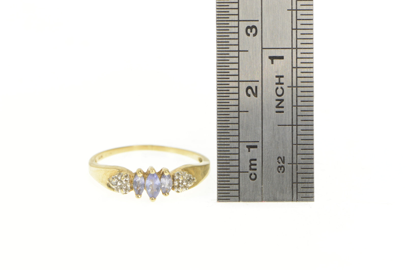 10K Marquise Tanzanite Diamond Cluster Band Ring Yellow Gold