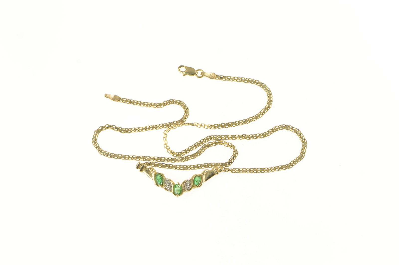 ·Item: 10K Natural Emerald Diamond Chevron Chain Necklace 17" Yellow Gold