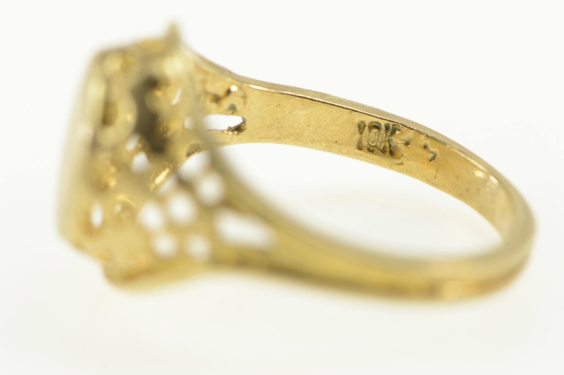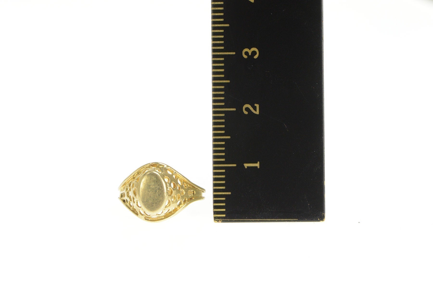 ·Item: 10K Oval Ornate Filigree Statement Childs Ring Size 2.75 Yellow Gold
