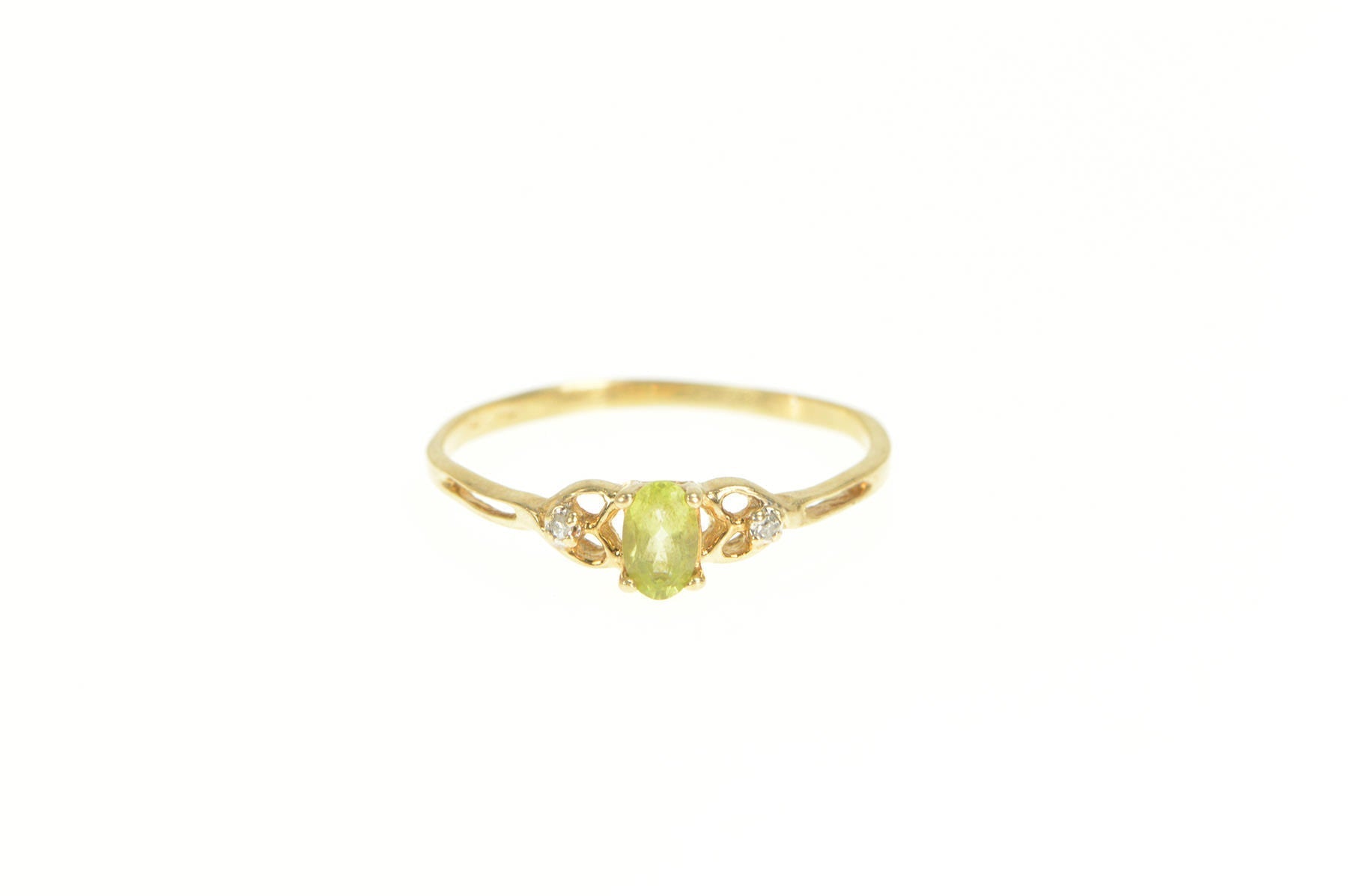 10K Oval Peridot Diamond Accent Classic Ring Yellow Gold
