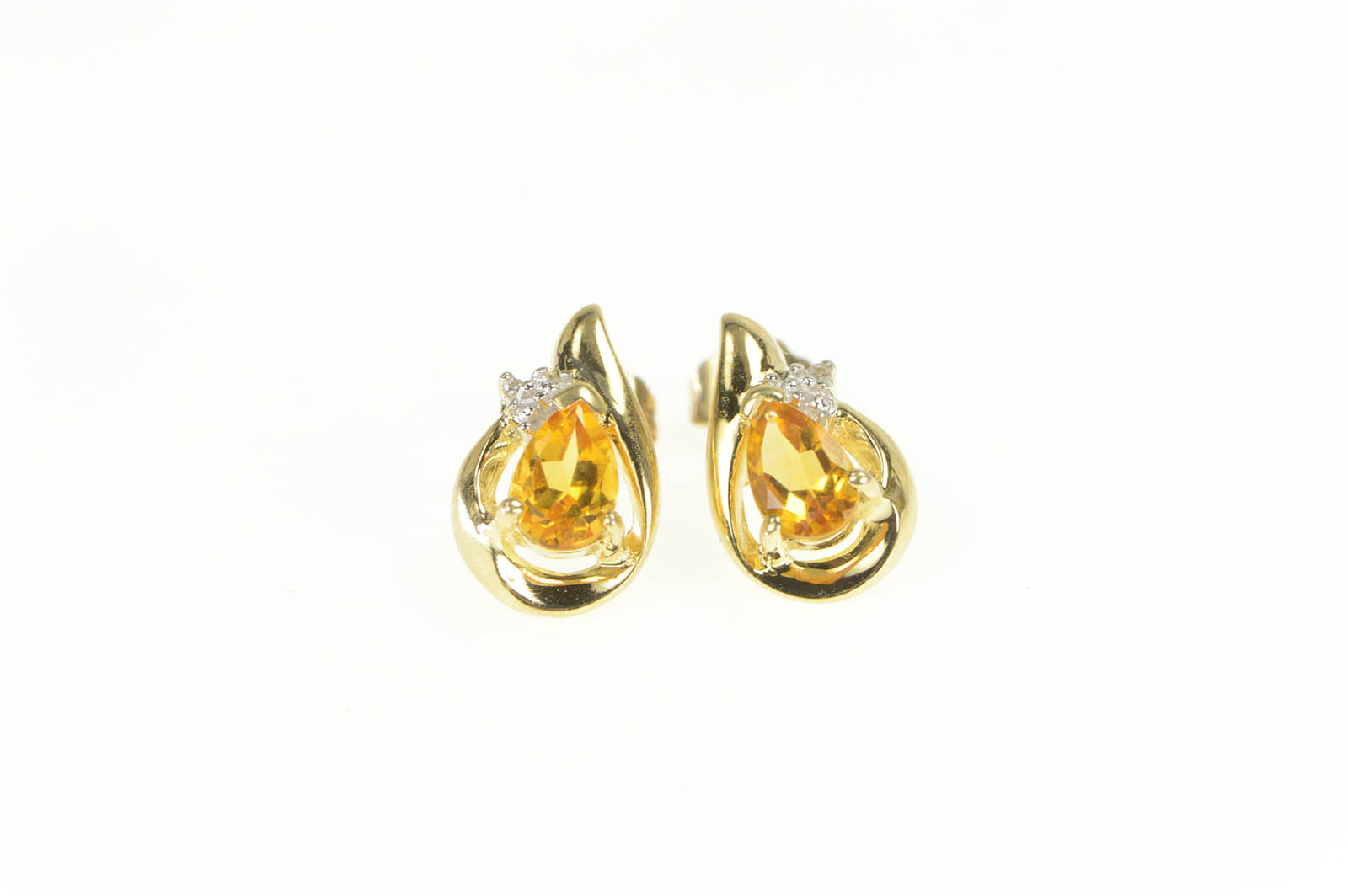 ·Item: 10K Pear Citrine Diamond Cluster Accent Stud Earrings Yellow Gold