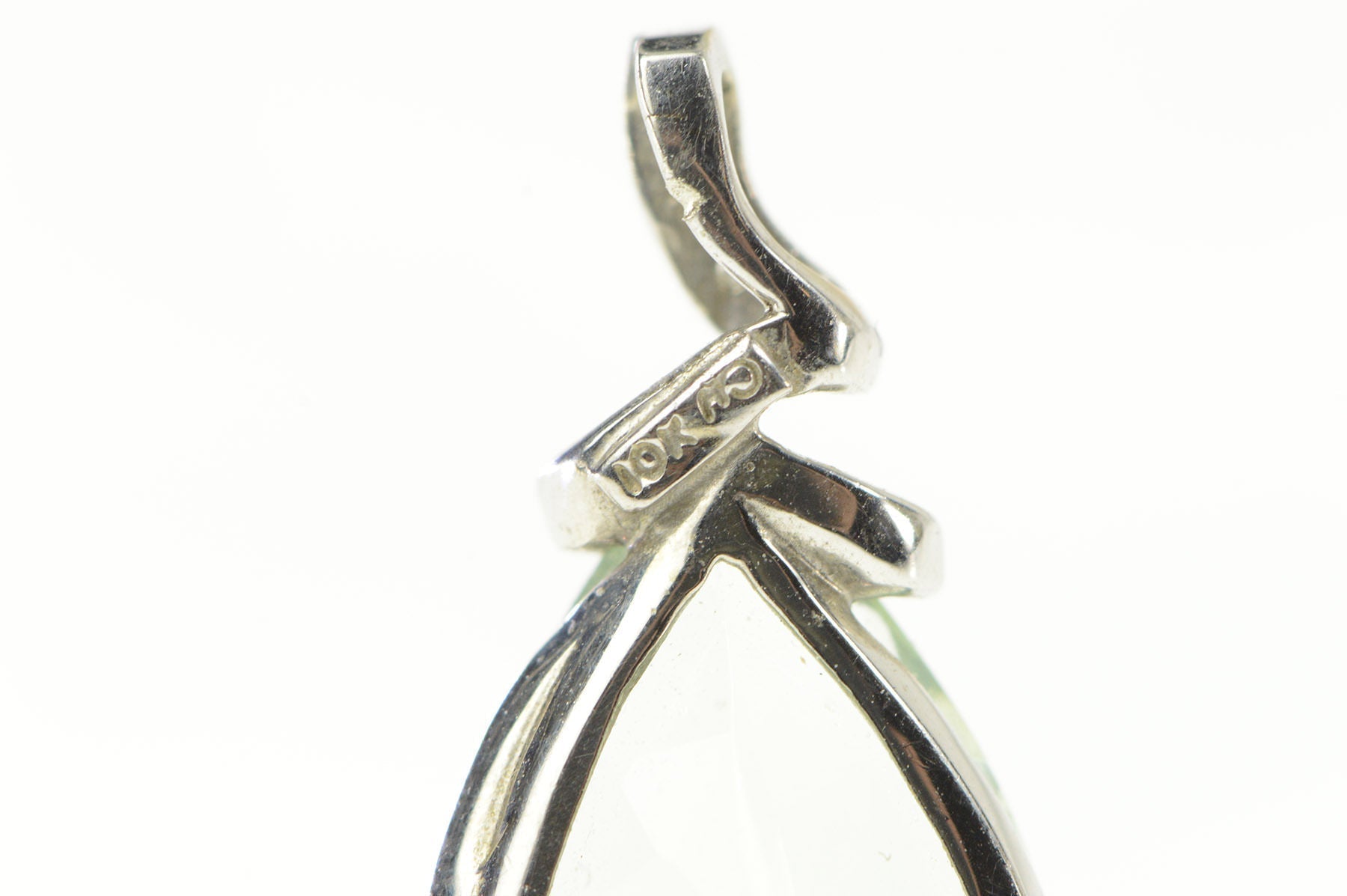 ·Item: 10K Pear Prasiolite Diamond Accent Statement Pendant White Gold