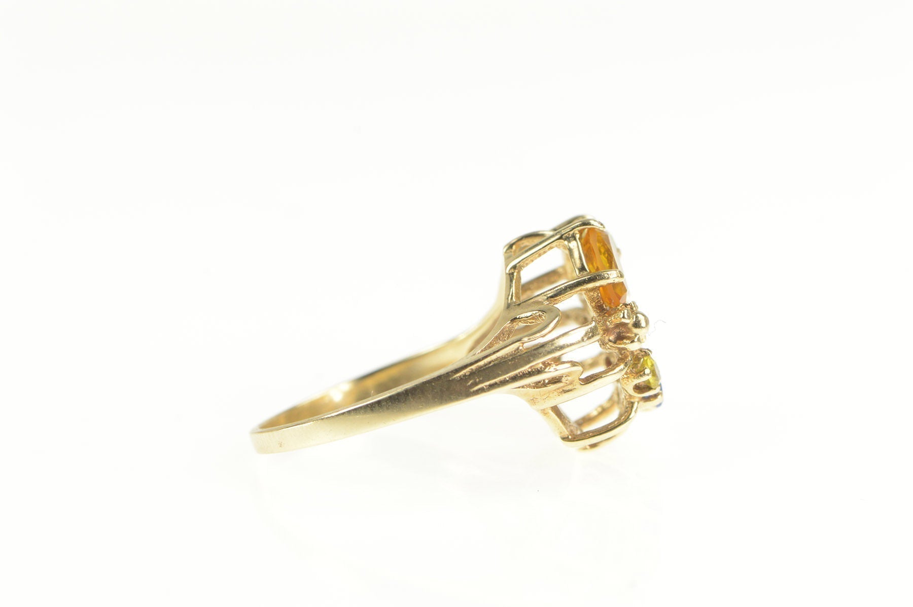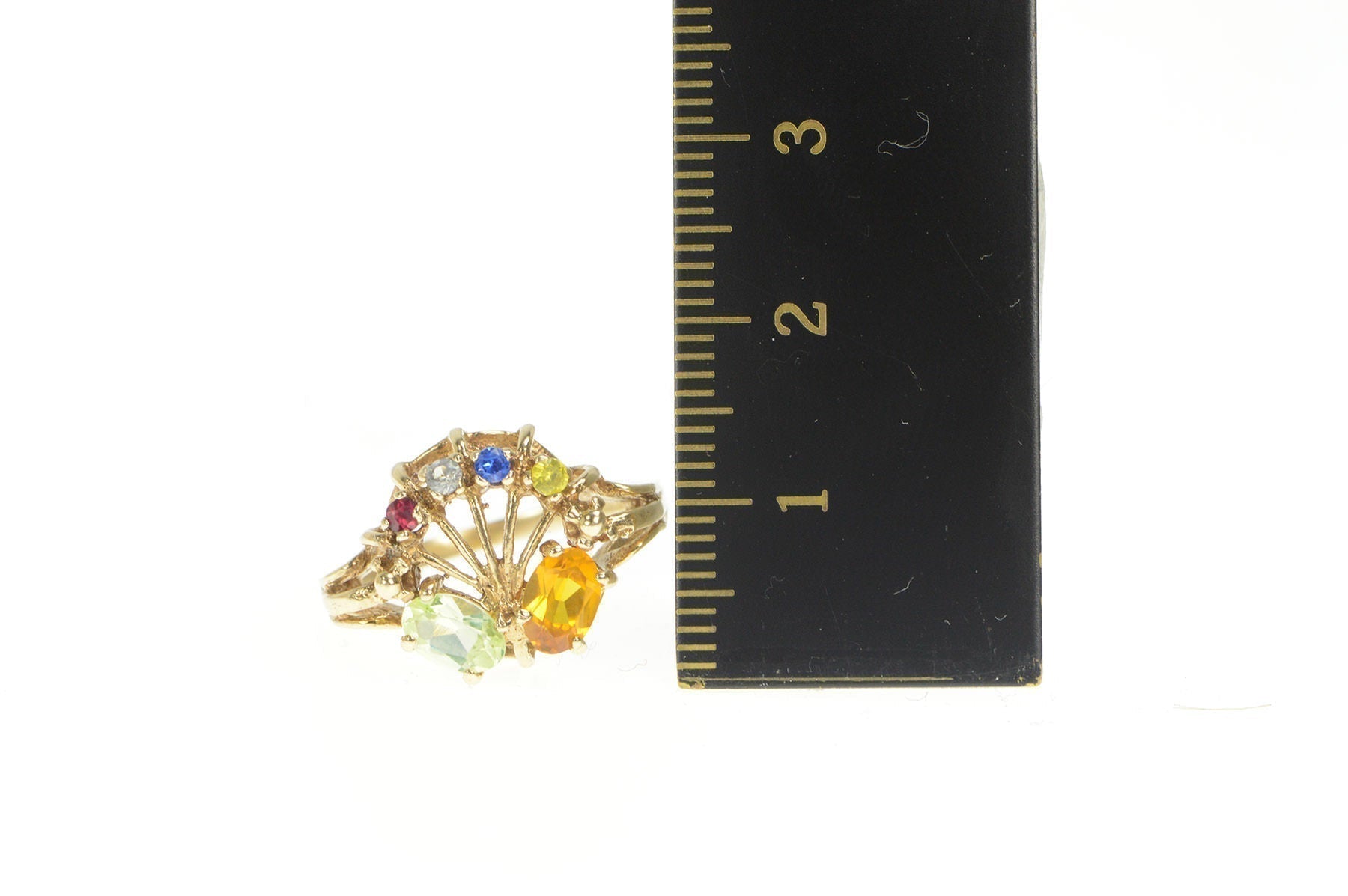10K Retro Citrine Lime Quartz Fanned Statement Ring Yellow Gold