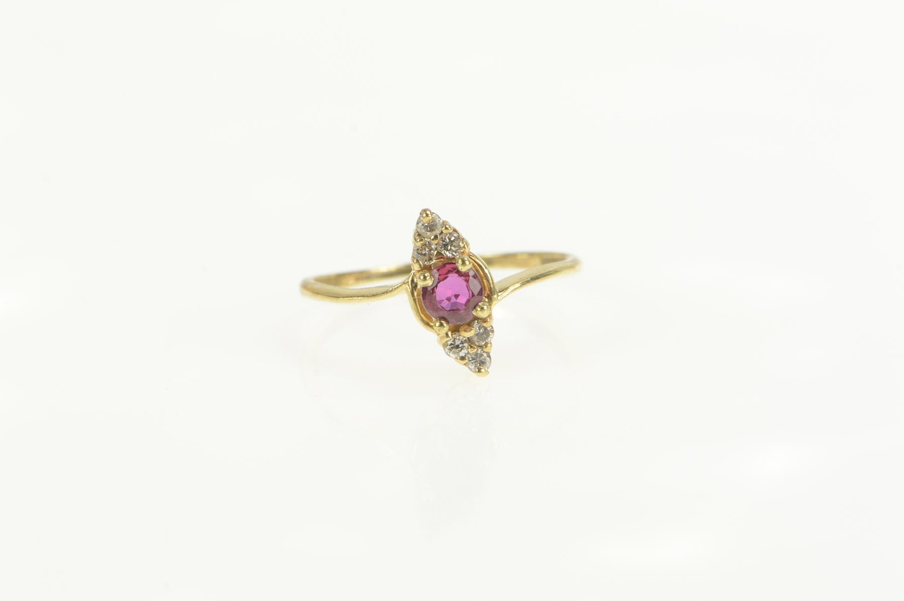 ·Item: 10K Ruby Diamond Cluster Accent Marquise Ring Size 5 Yellow Gold