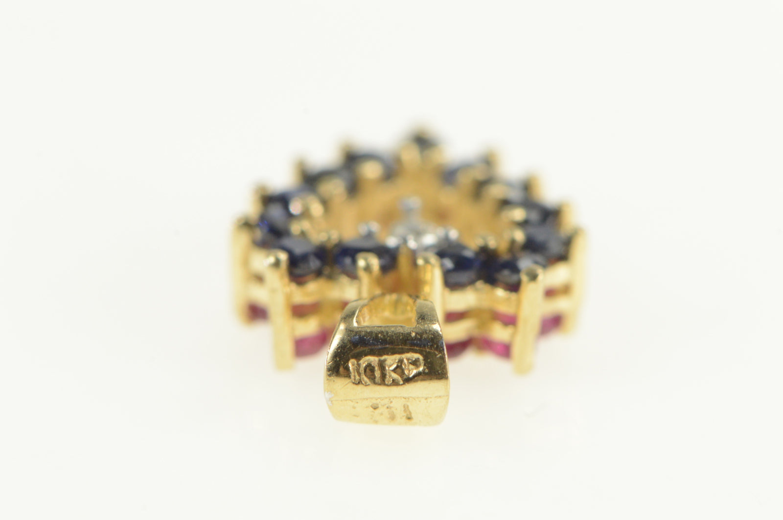 ·Item: 10K Ruby Sapphire Diamond Reversible Heart Love Pendant Yellow Gold