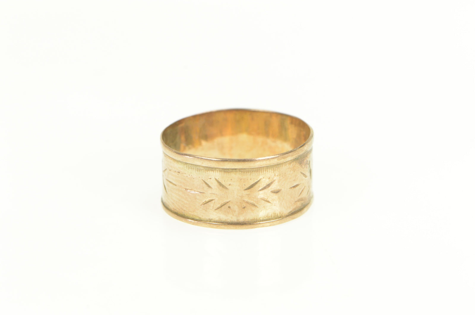 ·Item: 10K Victorian 8.6mm Vine Leaf Pattern Band Ring Size 6.75 Yellow Gold