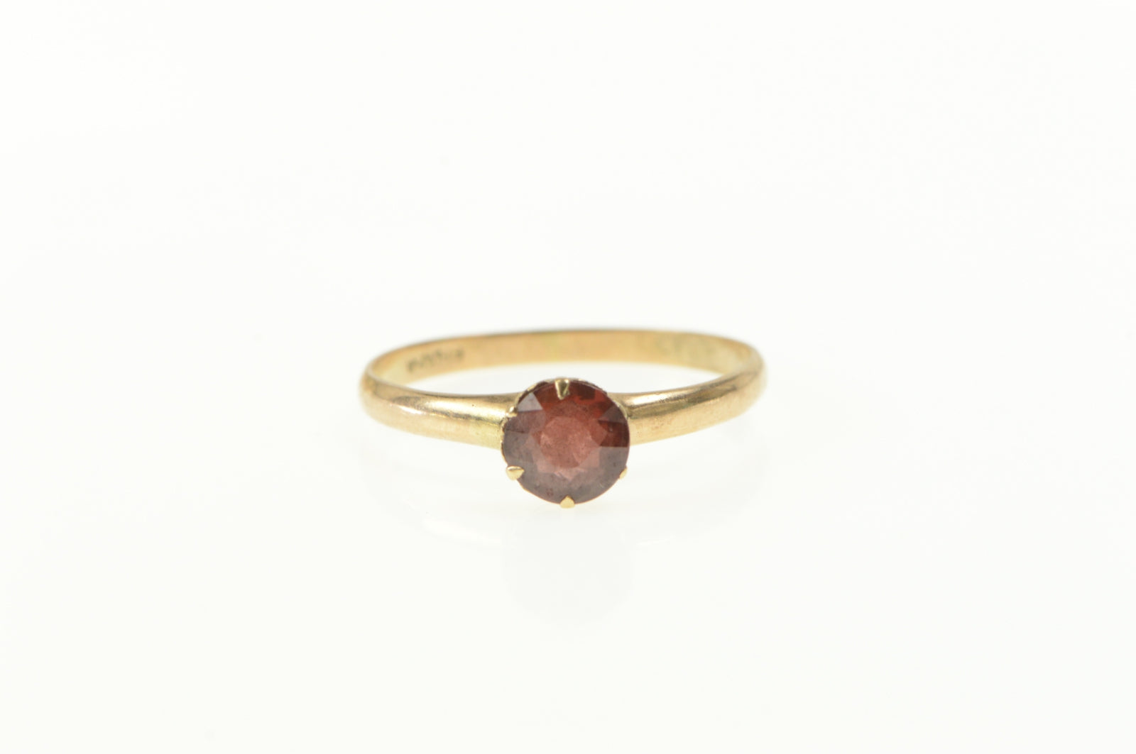 ·Item: 10K Victorian Garnet Solitaire Classic Antique Ring Size 7 Yellow Gold