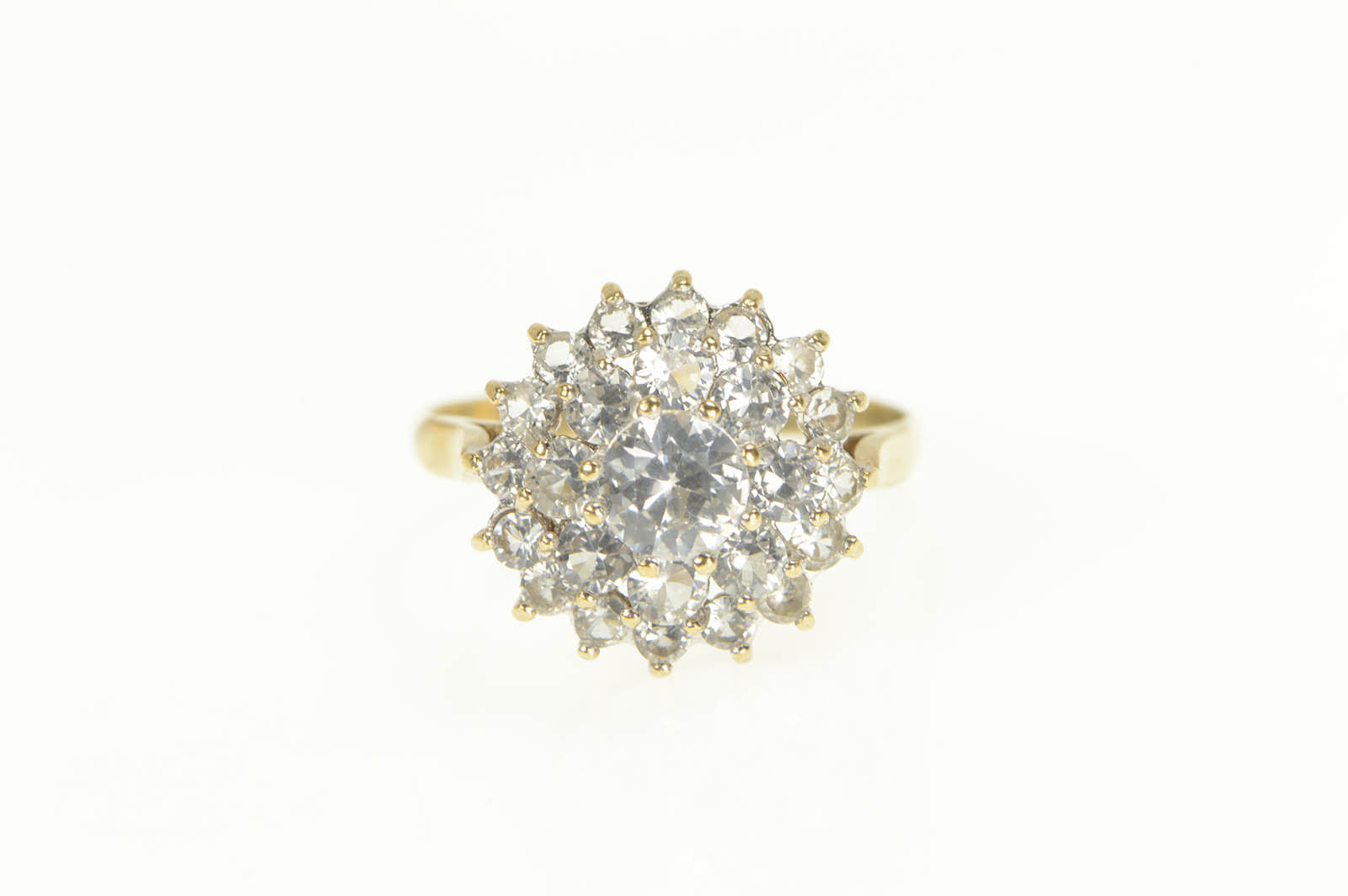 ·Item: 10K White Topaz Double Halo Cocktail Statement Ring Size 7.75 Yellow Gold