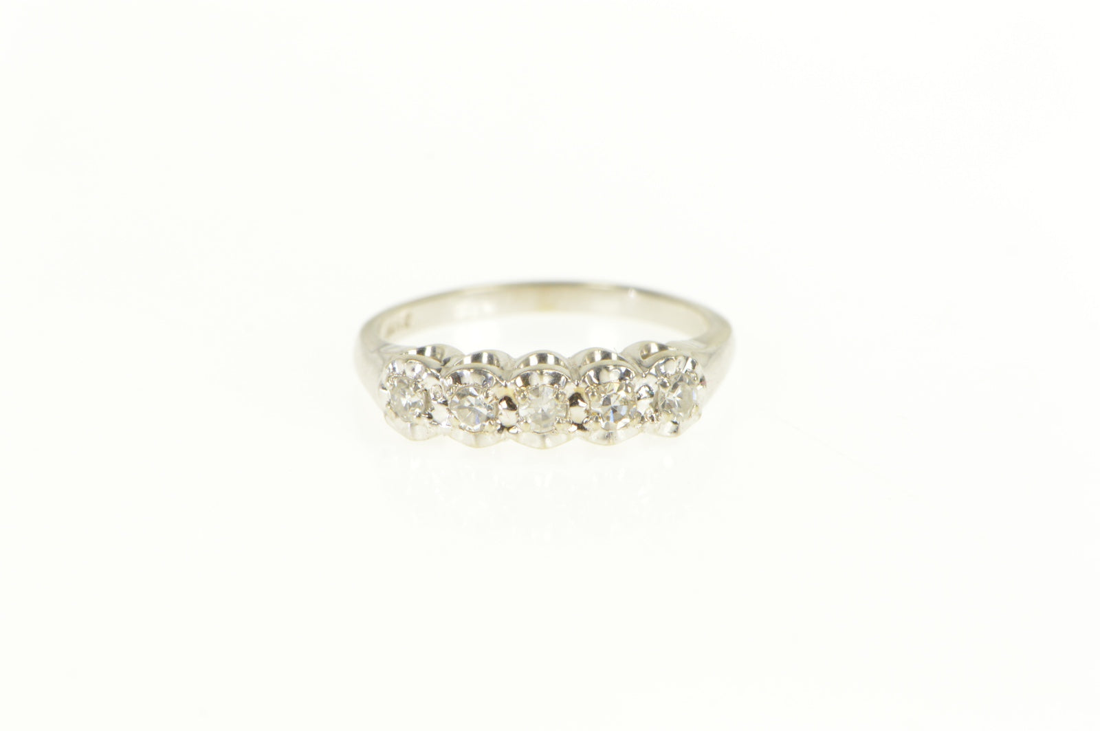 14K 0.25 Ctw 1950's Classic Vintage Wedding Band Ring White Gold
