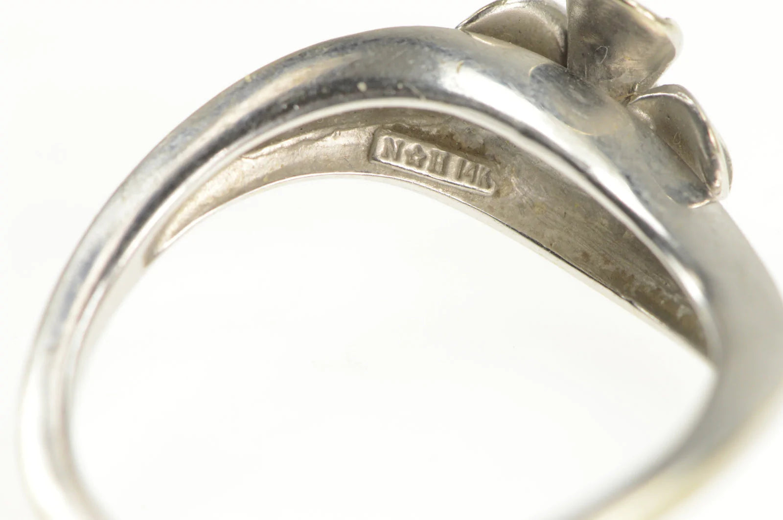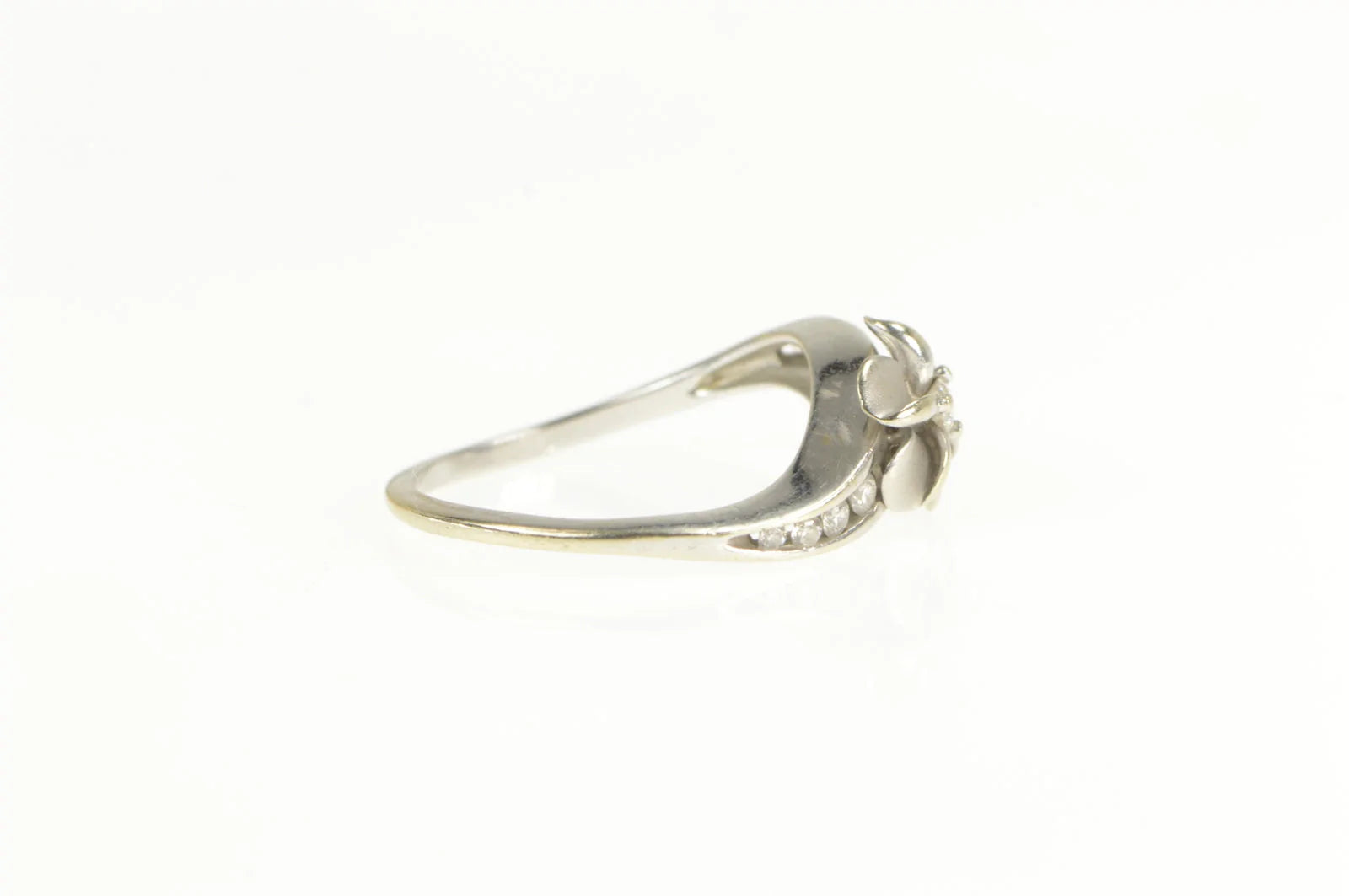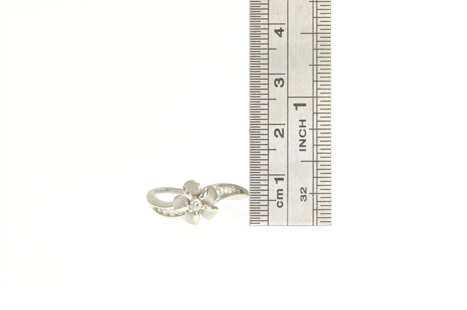 ·Item: 14K 0.25 Ctw Diamond Plumeria Flower Promise Ring Size 7 White Gold