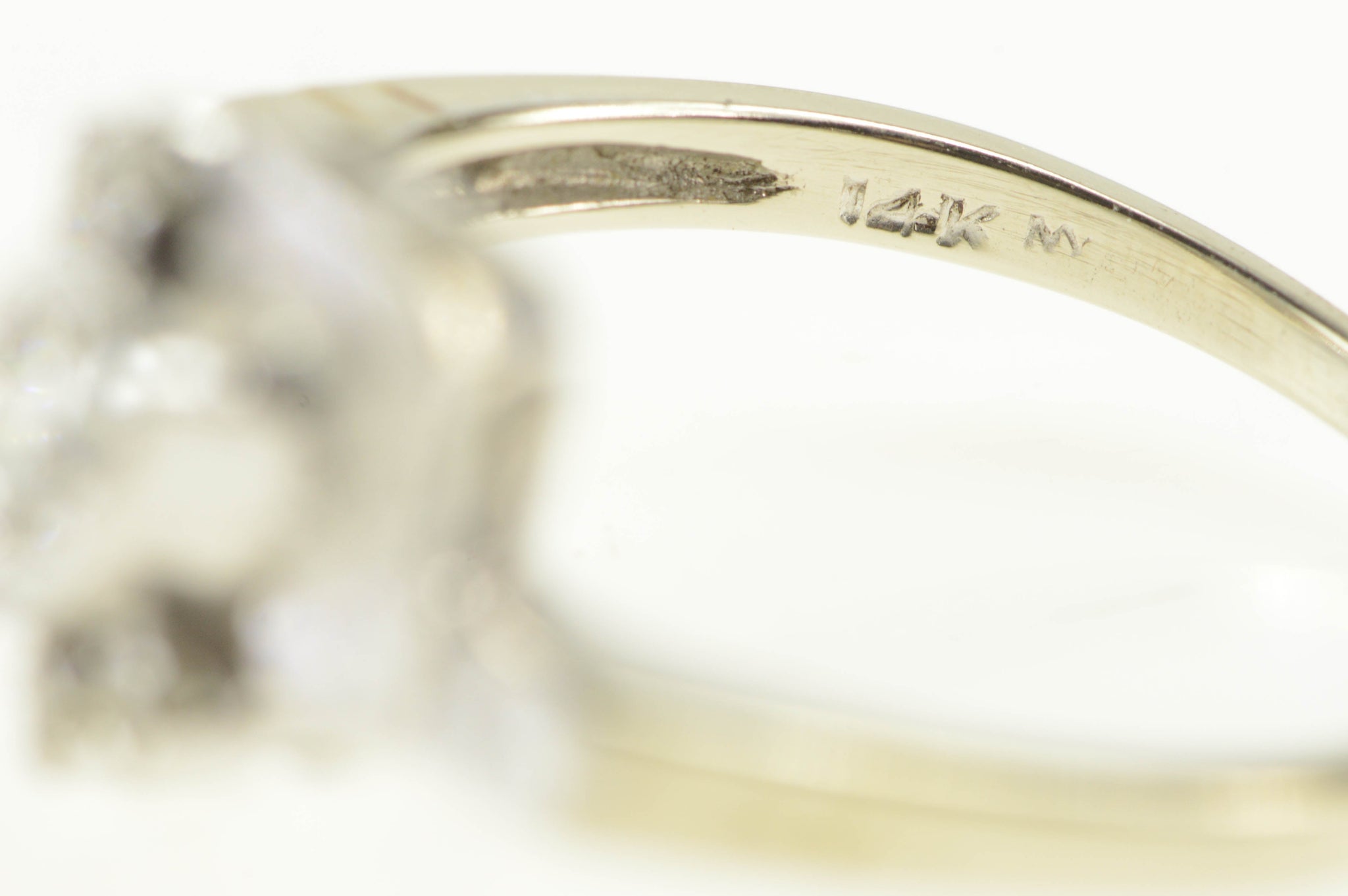 ·Item: 14K 0.33 Ctw 1940's Diamond Cluster Bypass Ring Size 9.75 White Gold
