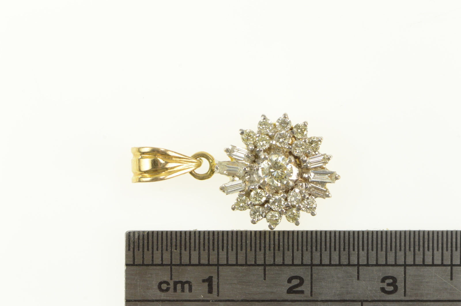 ·Item: 14K 0.50 Ctw Round Diamond Halo Cluster Pendant Yellow Gold