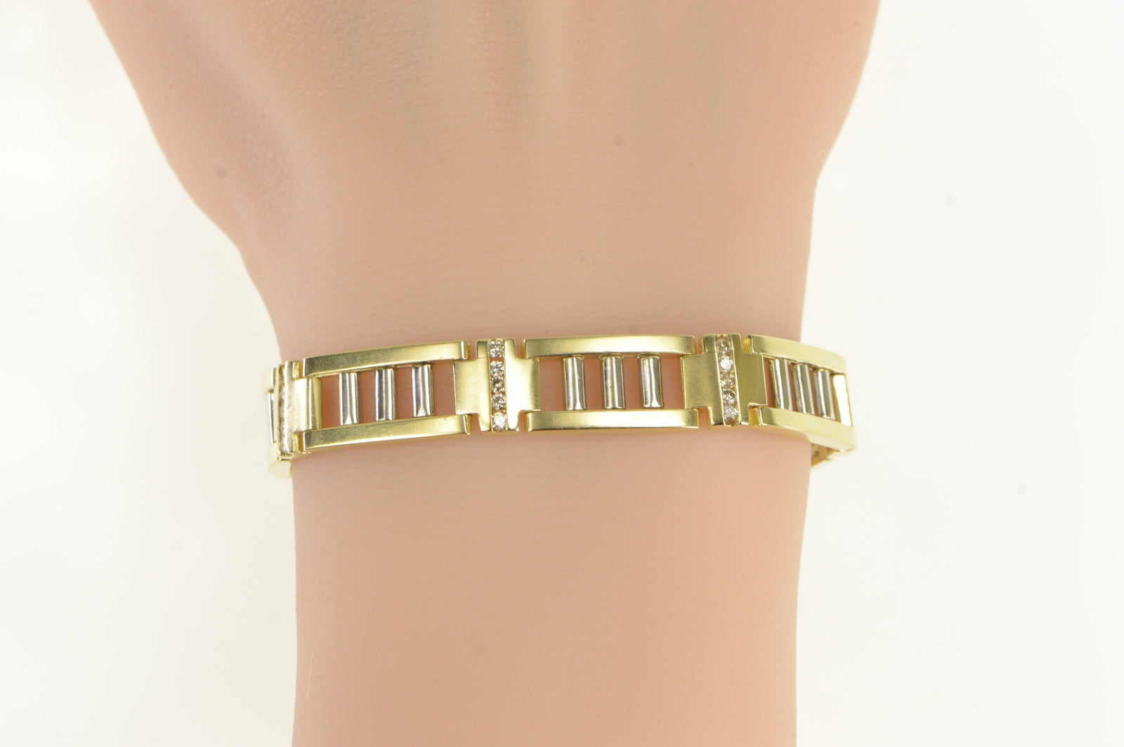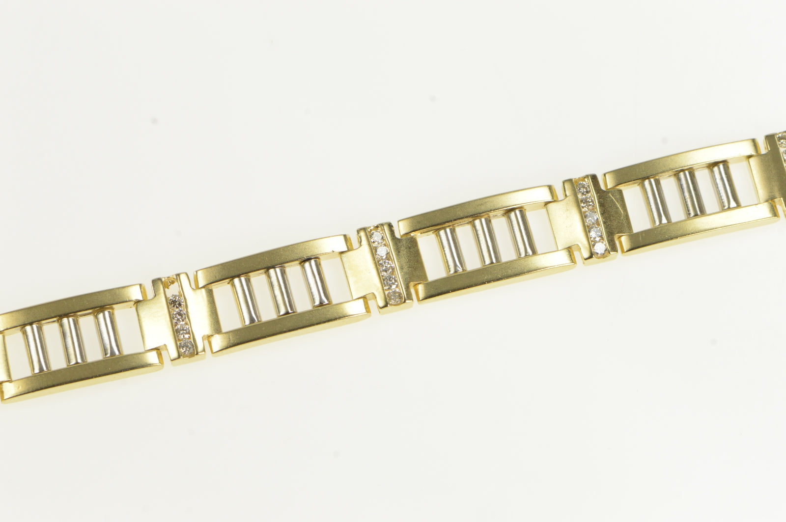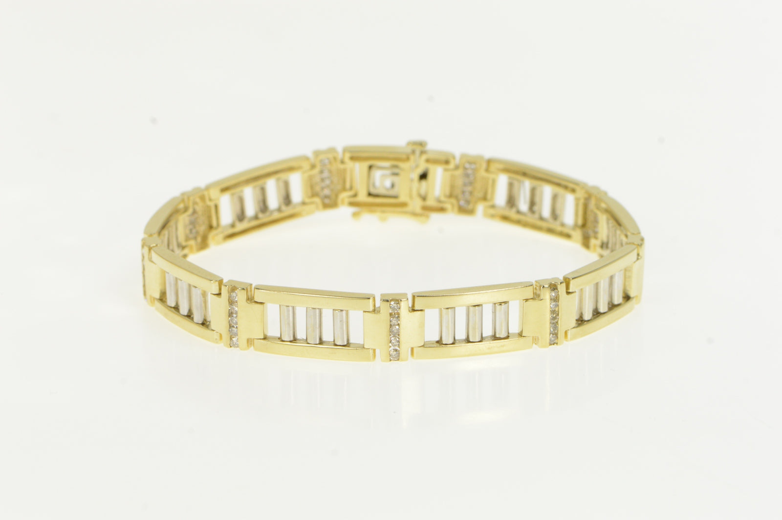 ·Item: 14K 1.00 Ctw Diamond Bar Link Two Tone Tennis Bracelet 8" Yellow Gold