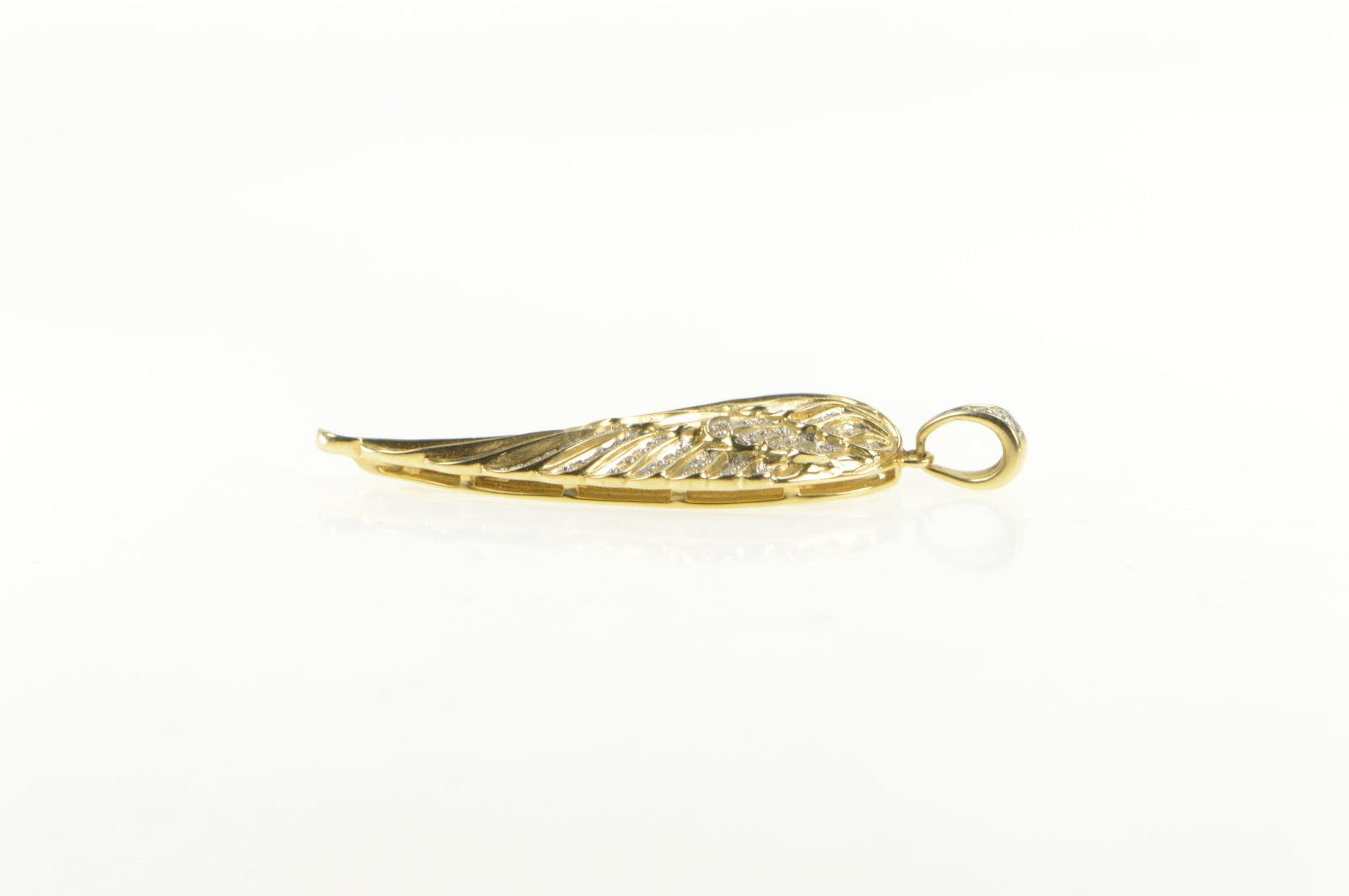 ·Item: 14K 1.00 Ctw Pave Diamond Encrusted Angel Wing Pendant Yellow Gold