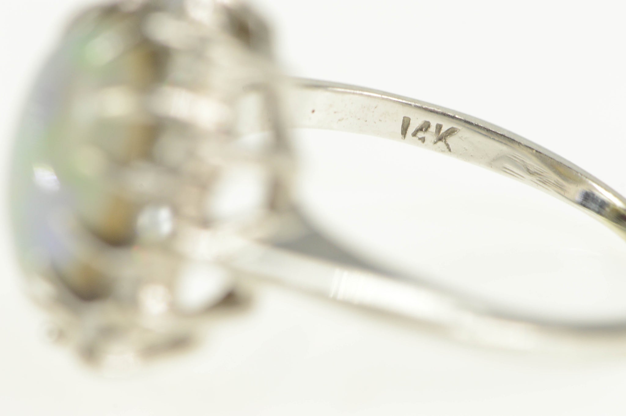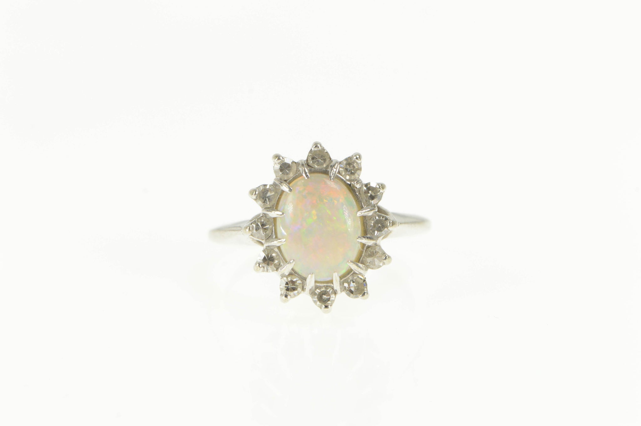 ·Item: 14K 1.25 Ctw Natural Opal Diamond Halo Statement Ring Size 5.5 White Gold